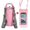 Portable waterproof bucket + double hook solid color pvc mobile phone bag = pink + pink