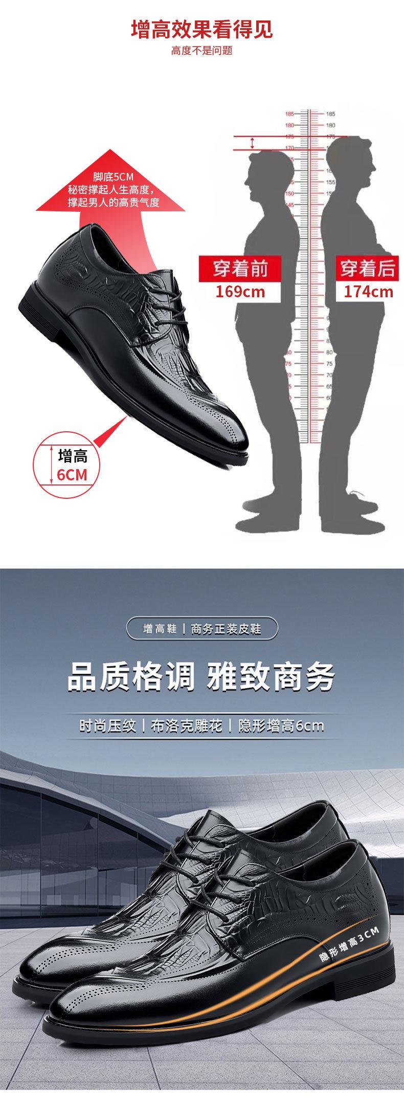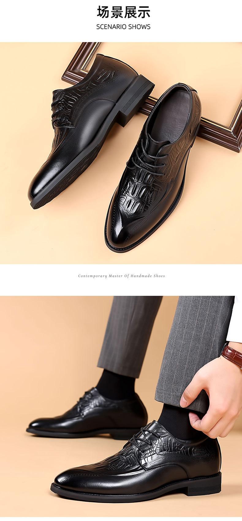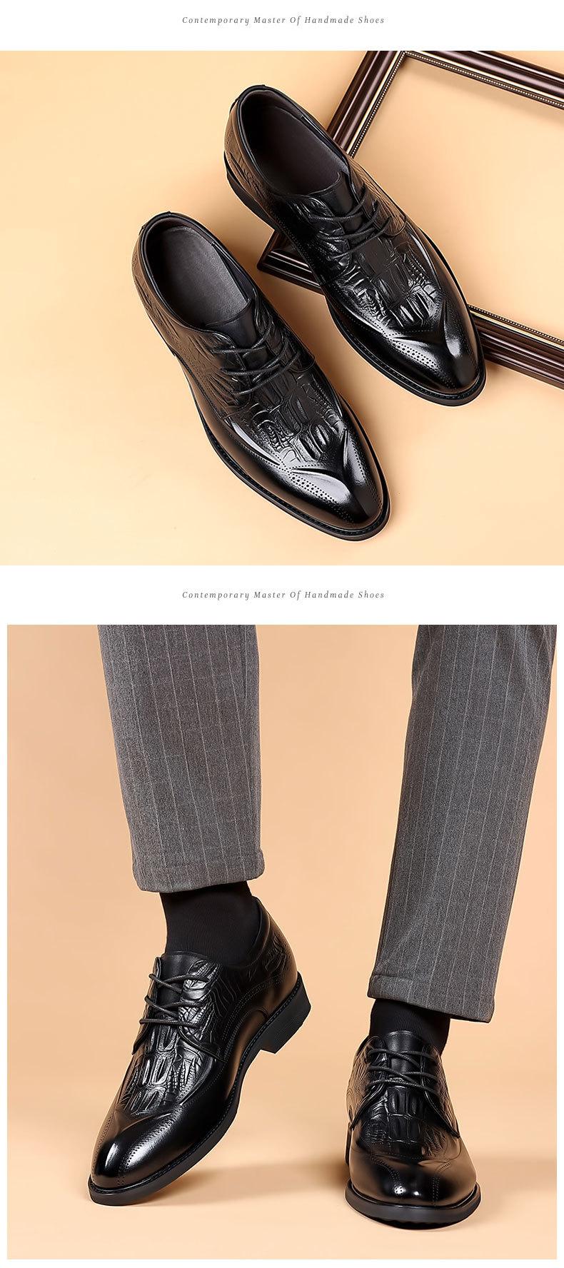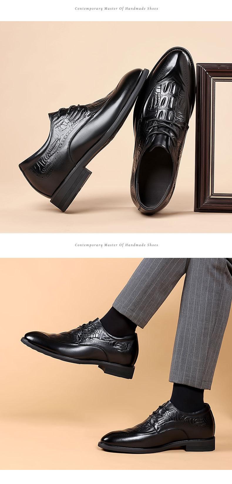 Zapatos de piel para hombre con aumento de altura interior, de piel genuina, estilo británico brogue tallado, para ir al trabajo, formales, de piel de vaca de primera capa, zapatos de hombre
