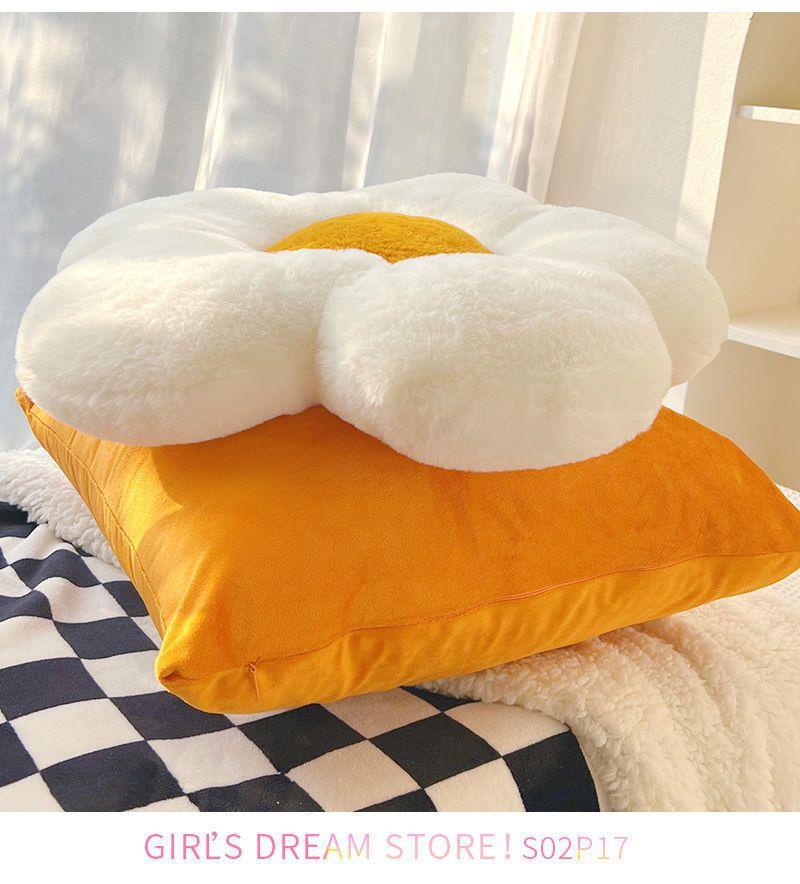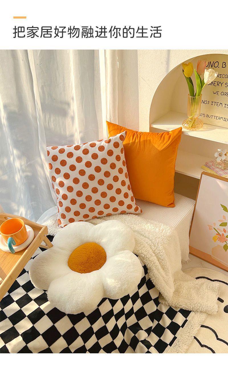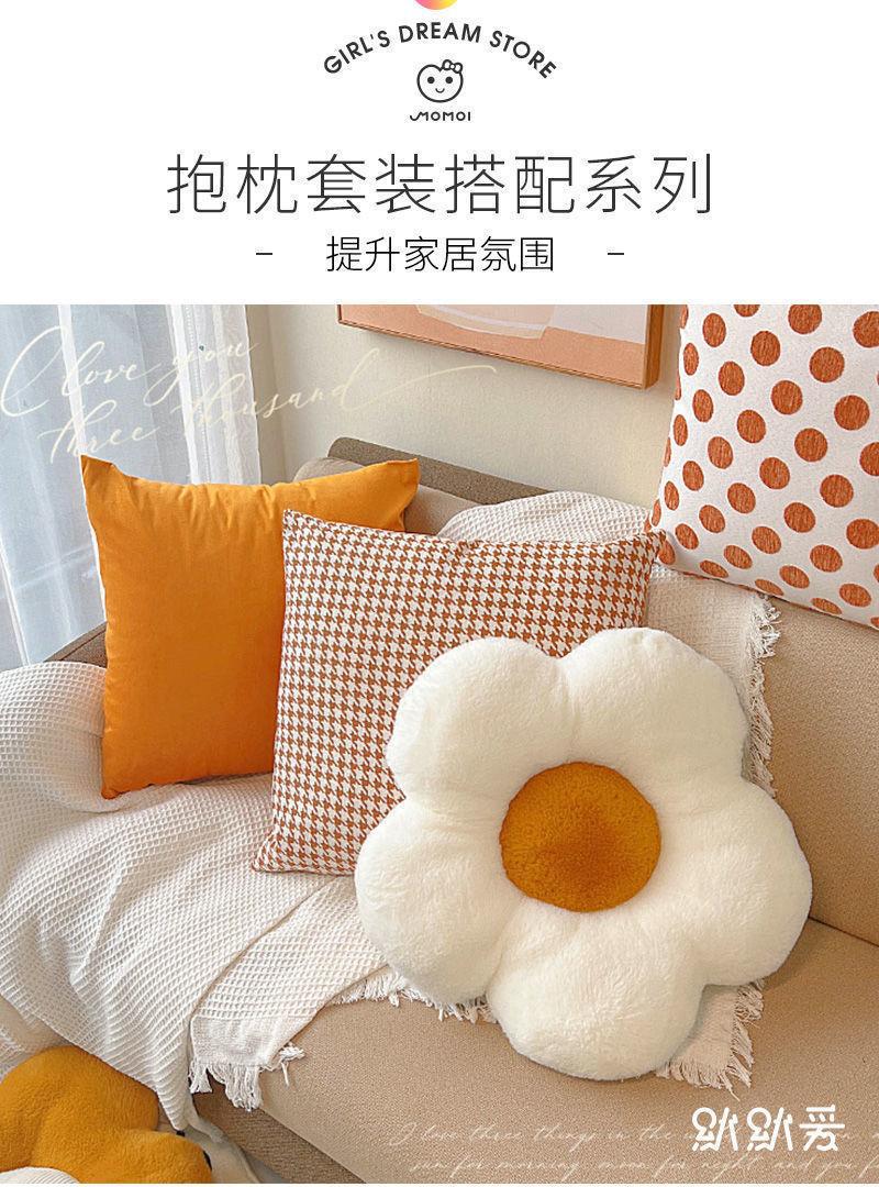 | Sofá pequeño y fresco de estilo nórdico con ventana salediza, cojín con mechones para sala de estar, funda de almohada de lona de algodón puro con margaritas bordadas |