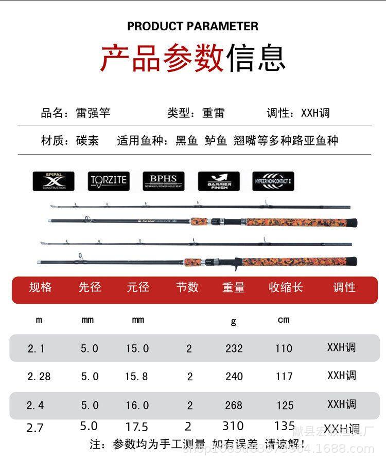 Heavy Thunder Caña Fuerte Xxh Caña de Pesca de Ancla Grande Caña Negra Lua 2.7m Caña de Pesca de Carbono Mango Recto Mango de Pistola Inserción Carretera