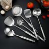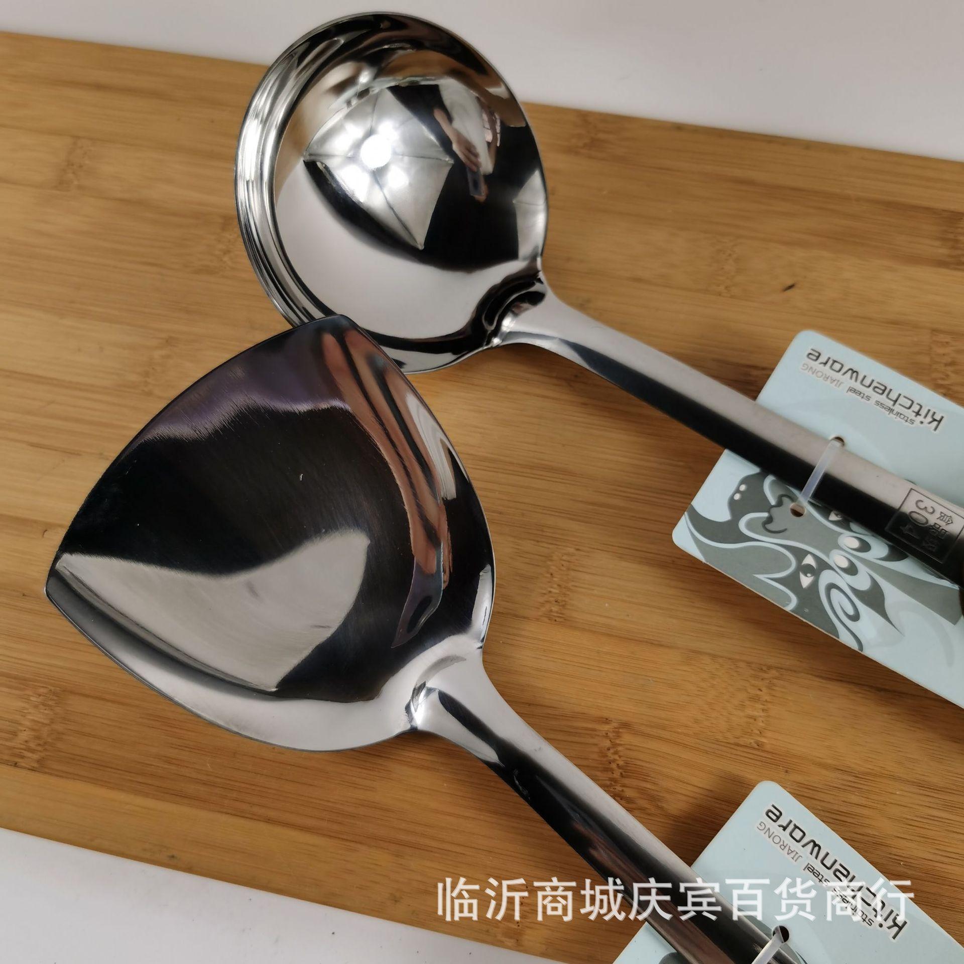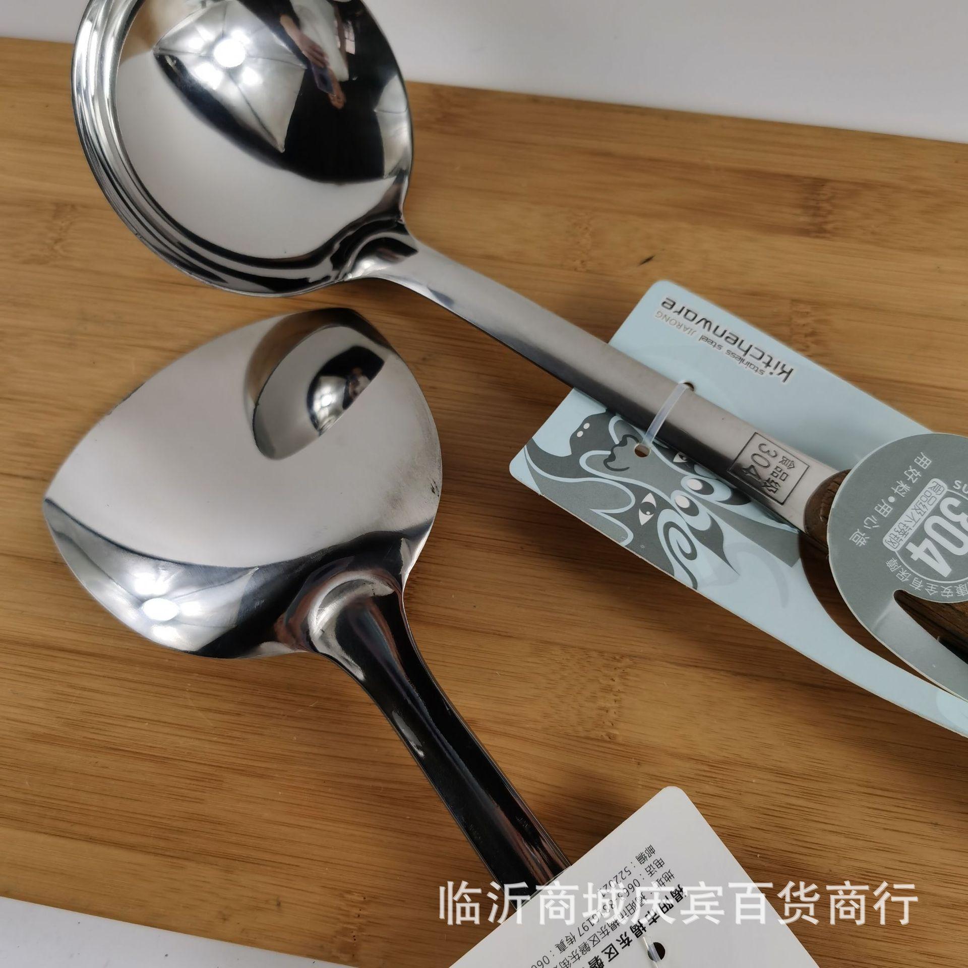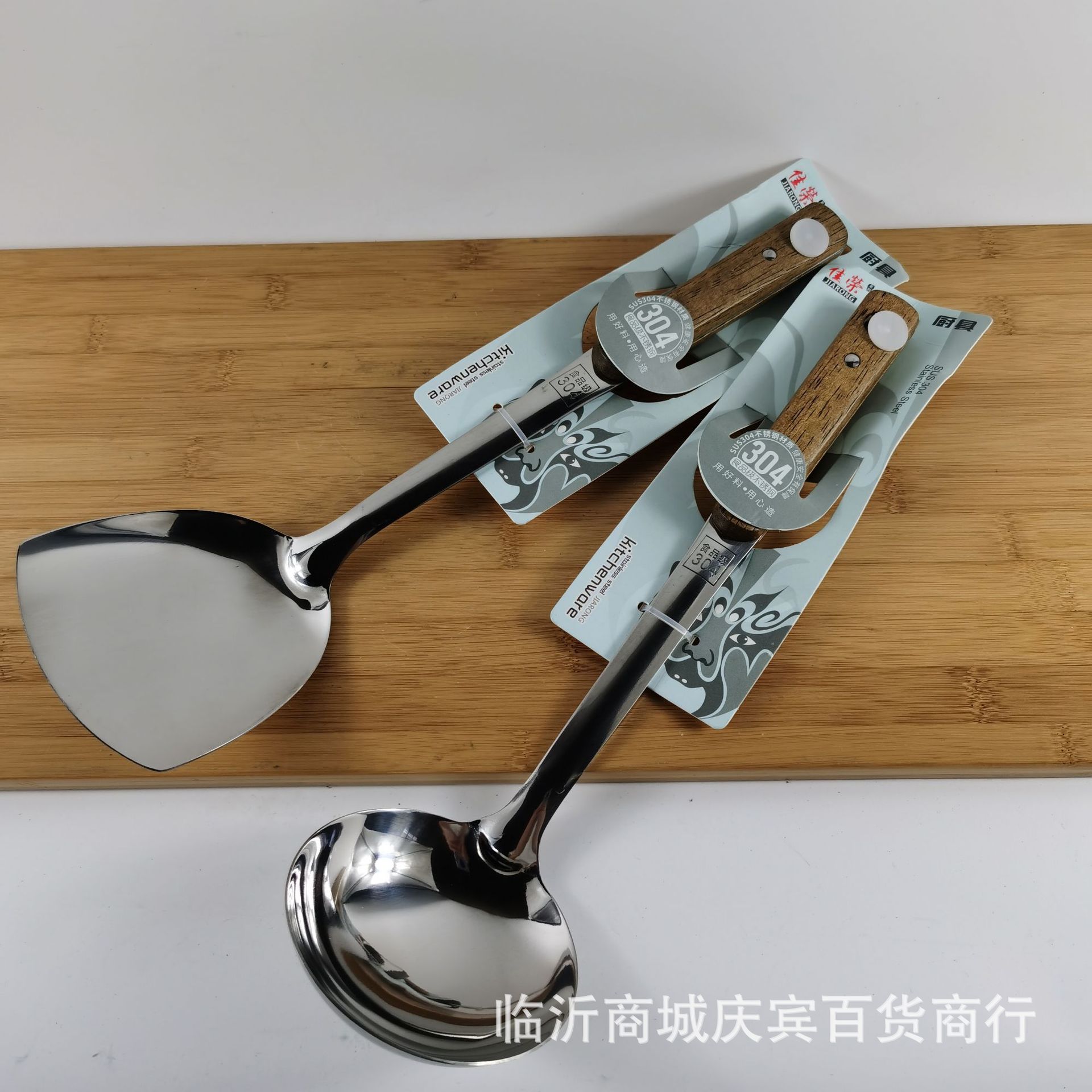 Cuchara para saltear con mango de madera de acero inoxidable de grado alimenticio 304, cuchara para sopa, pala, utensilios de cocina, sartén antiadherente para el hogar, cuchara adecuada