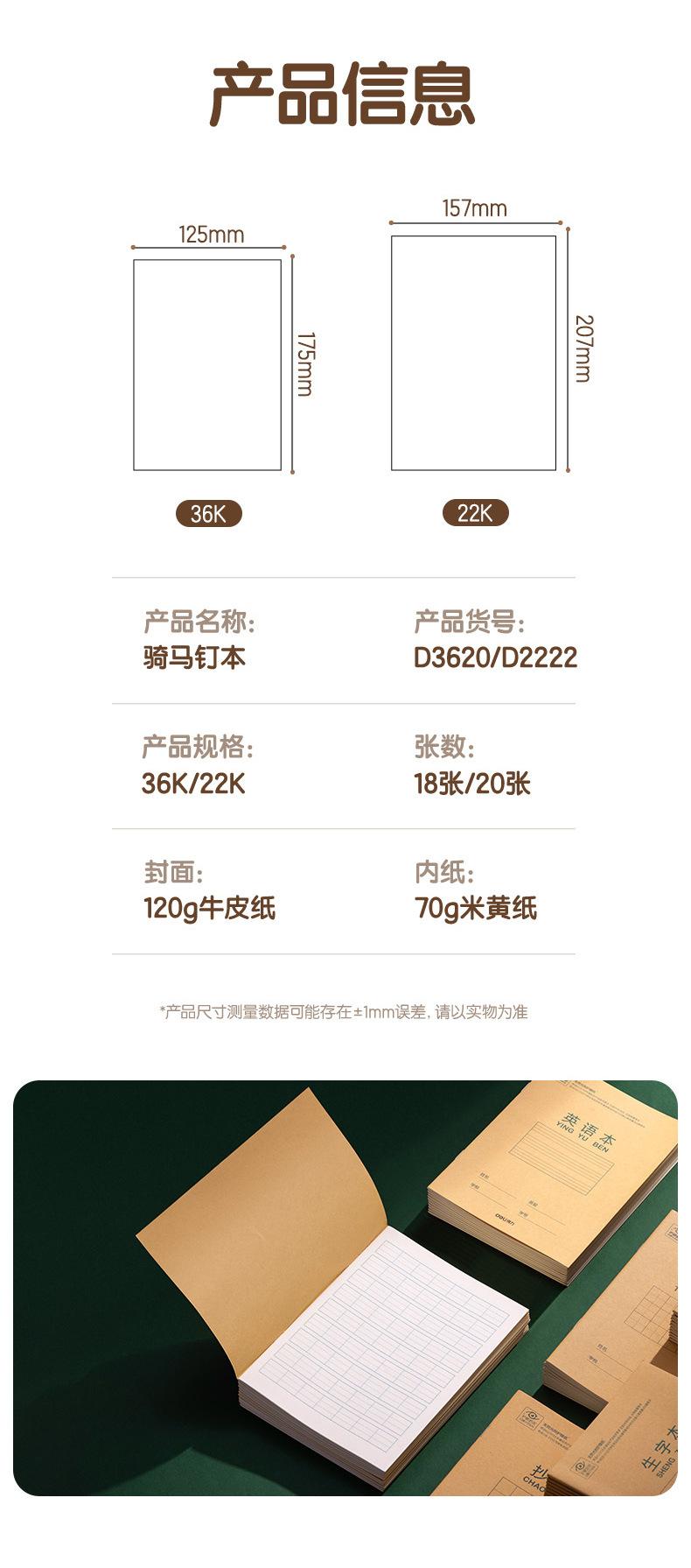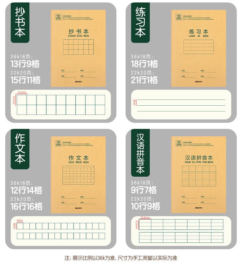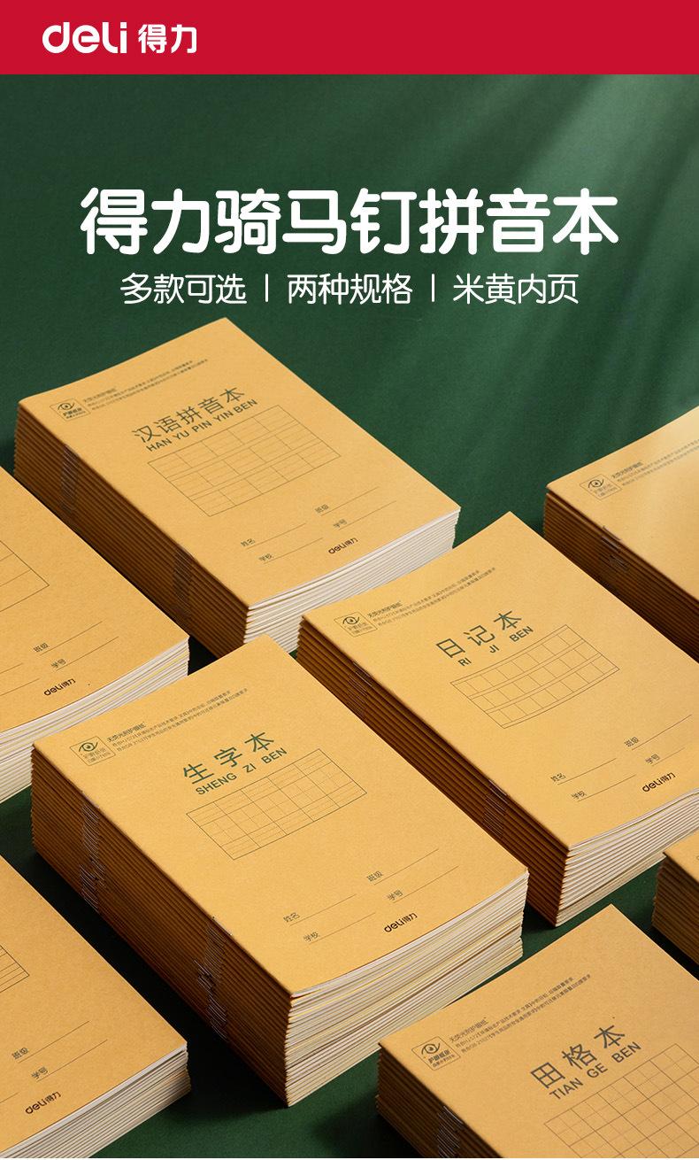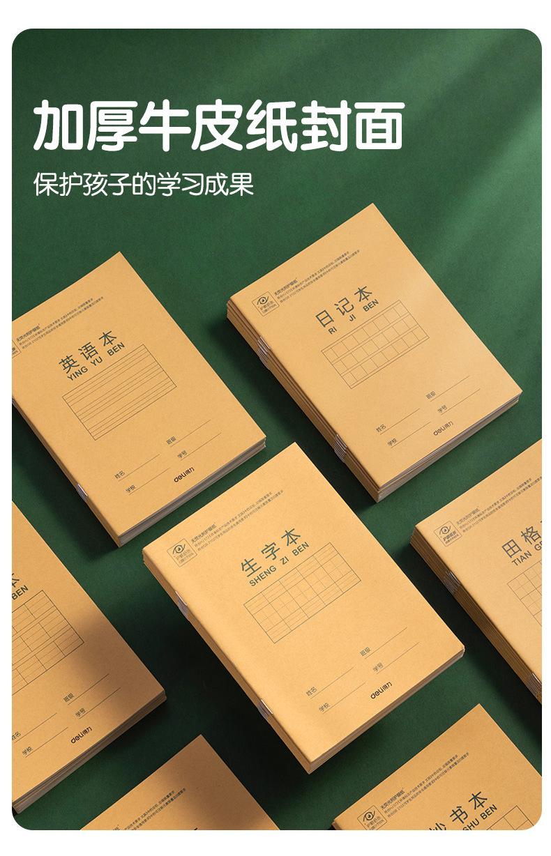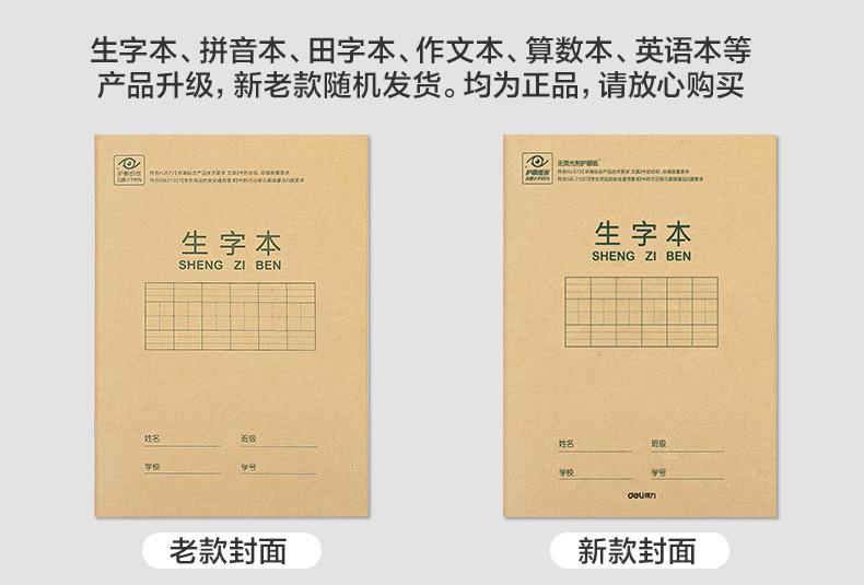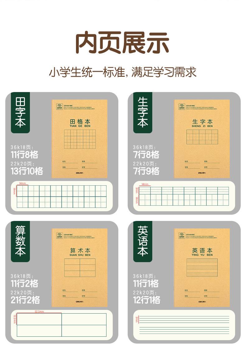 Papelería Deli 20 Tian Zi Ge cuaderno de ejercicios libro chino Pinyin nuevas palabras tres líneas aritmética inglesa 36k