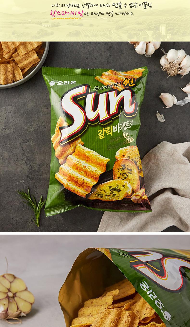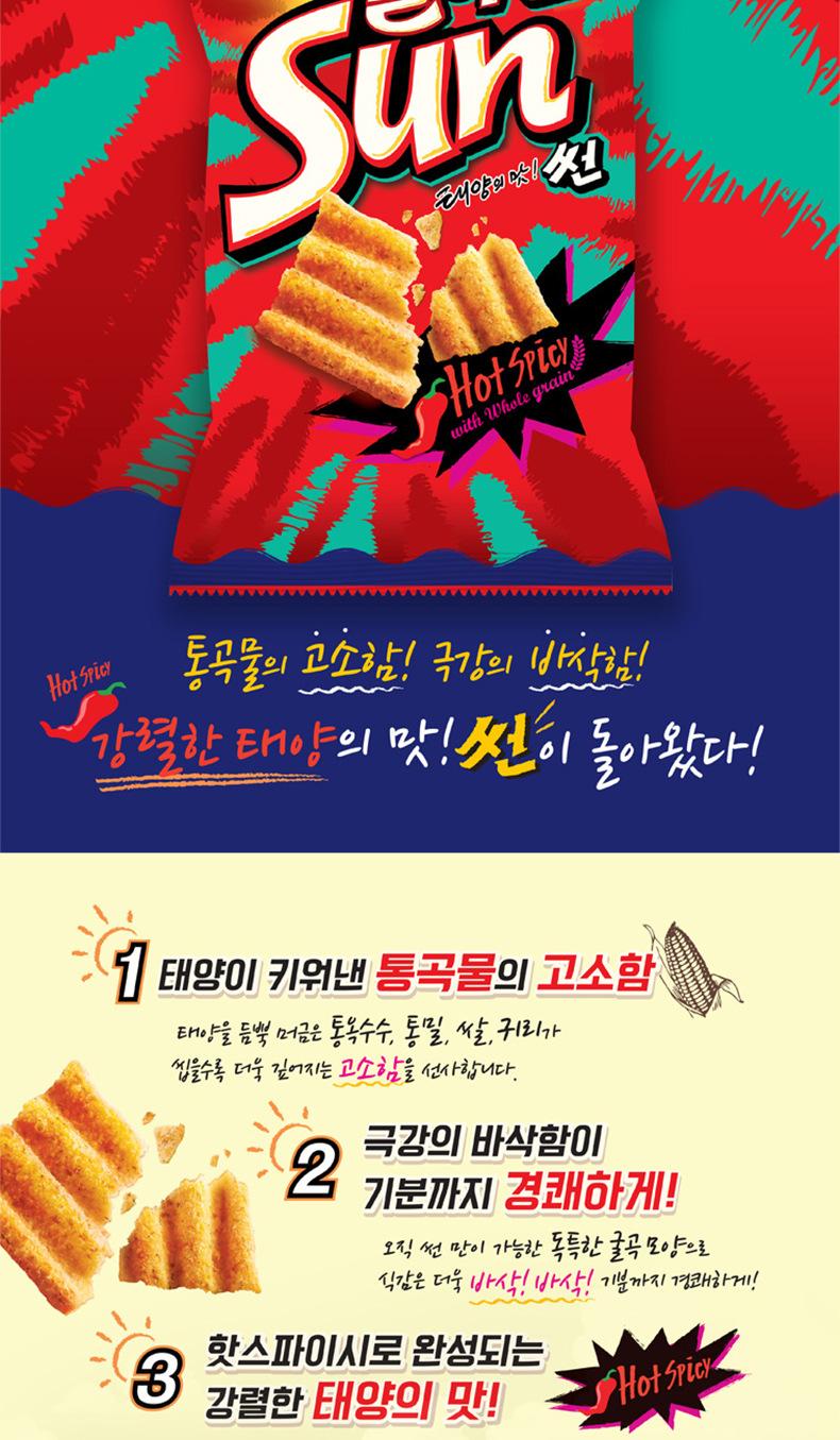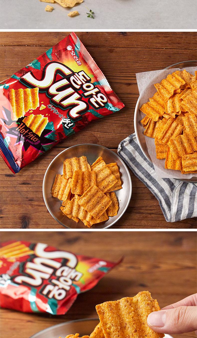 Importado de Corea del Sur Orion Sun Corn Flakes Sabor Picante/Glic 70g Papas Fritas Infladas Onduladas Snacks