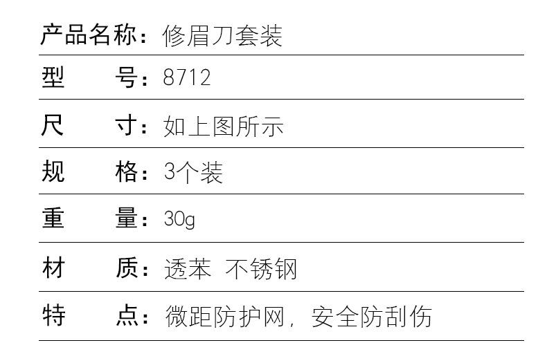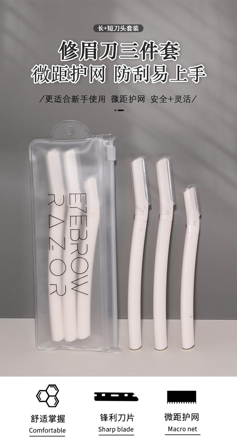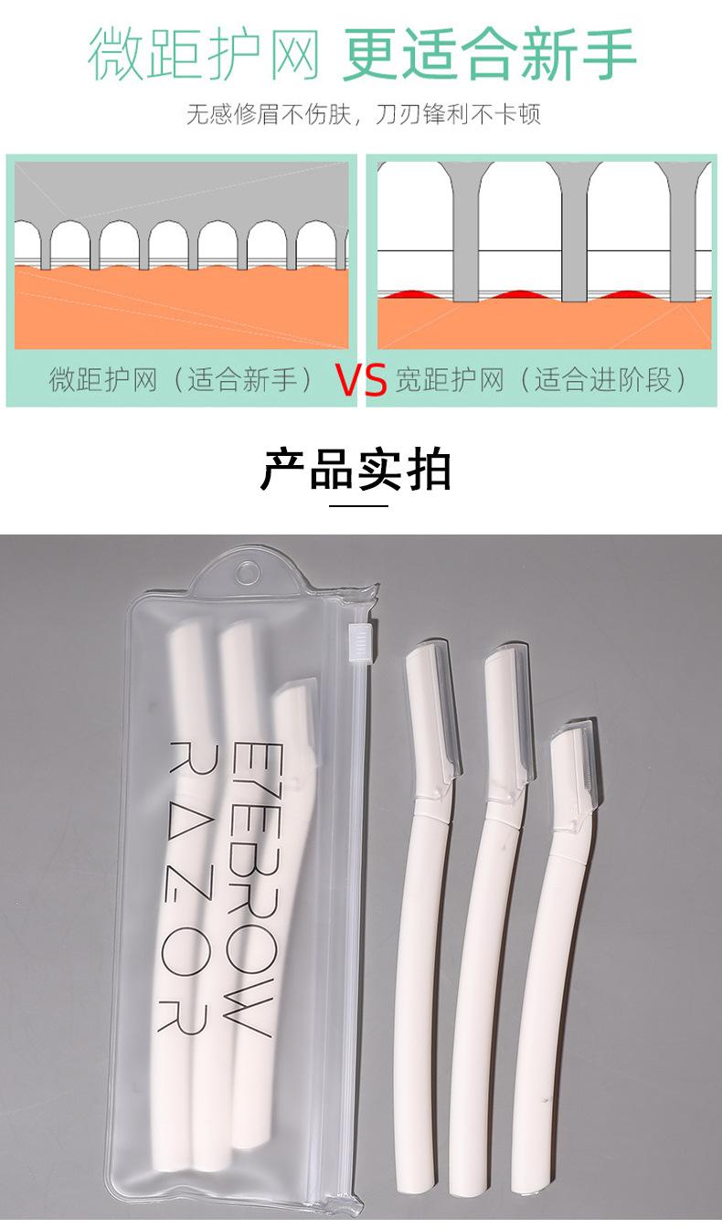 Cuchillo para cejas unisex con 3 decoraciones, venta al por mayor de fábrica, hoja de acero inoxidable de seguridad con red protectora.