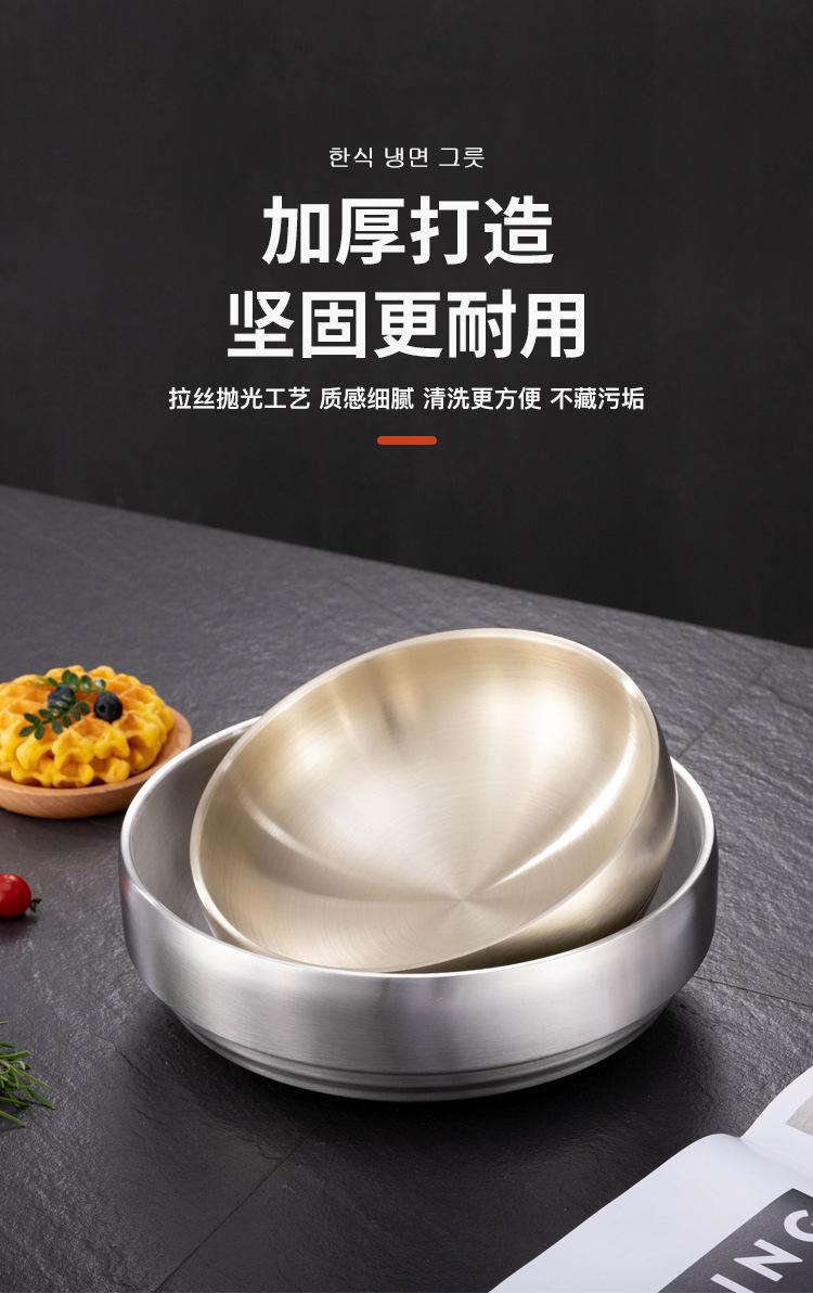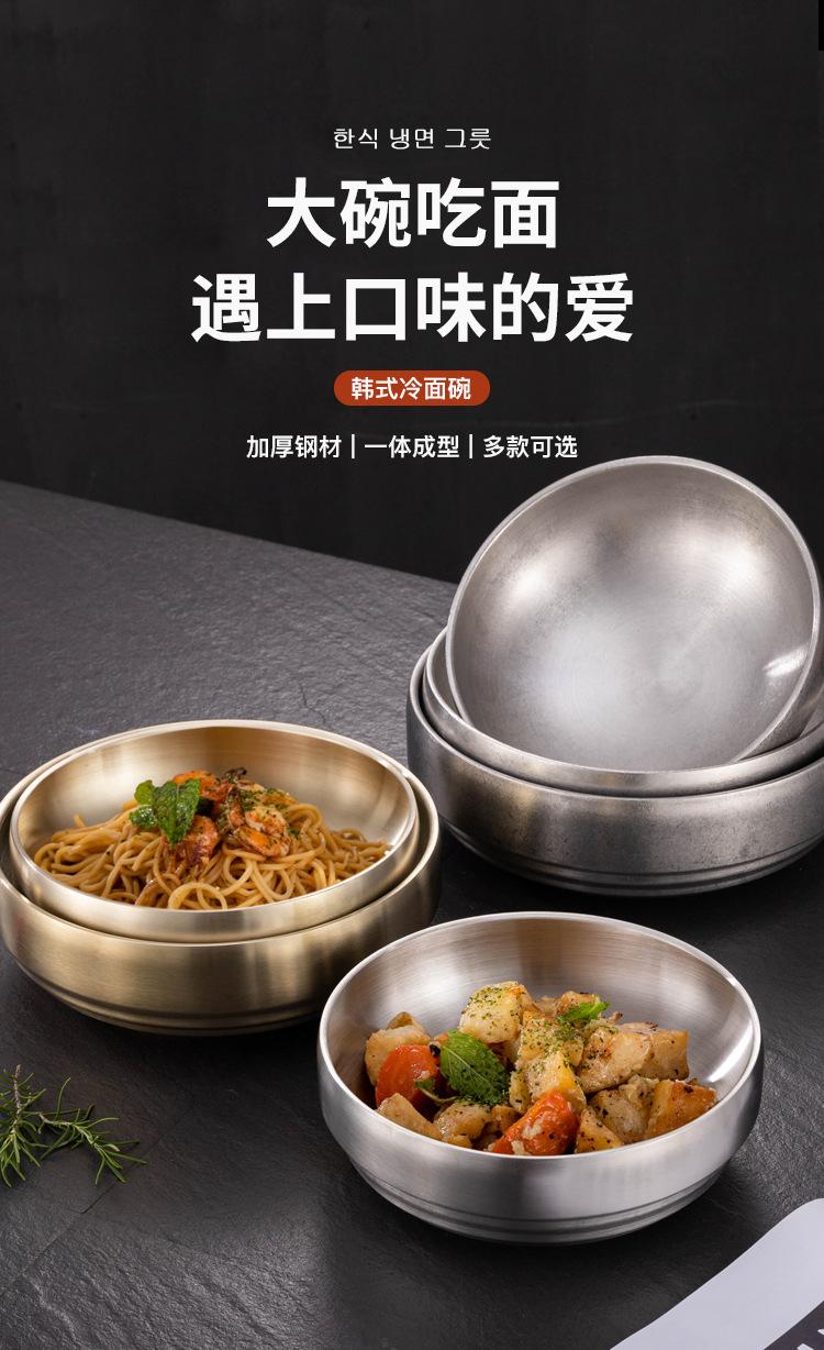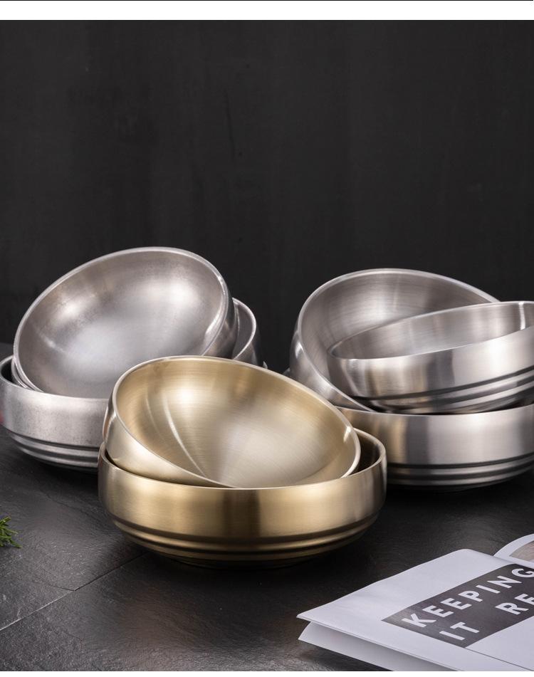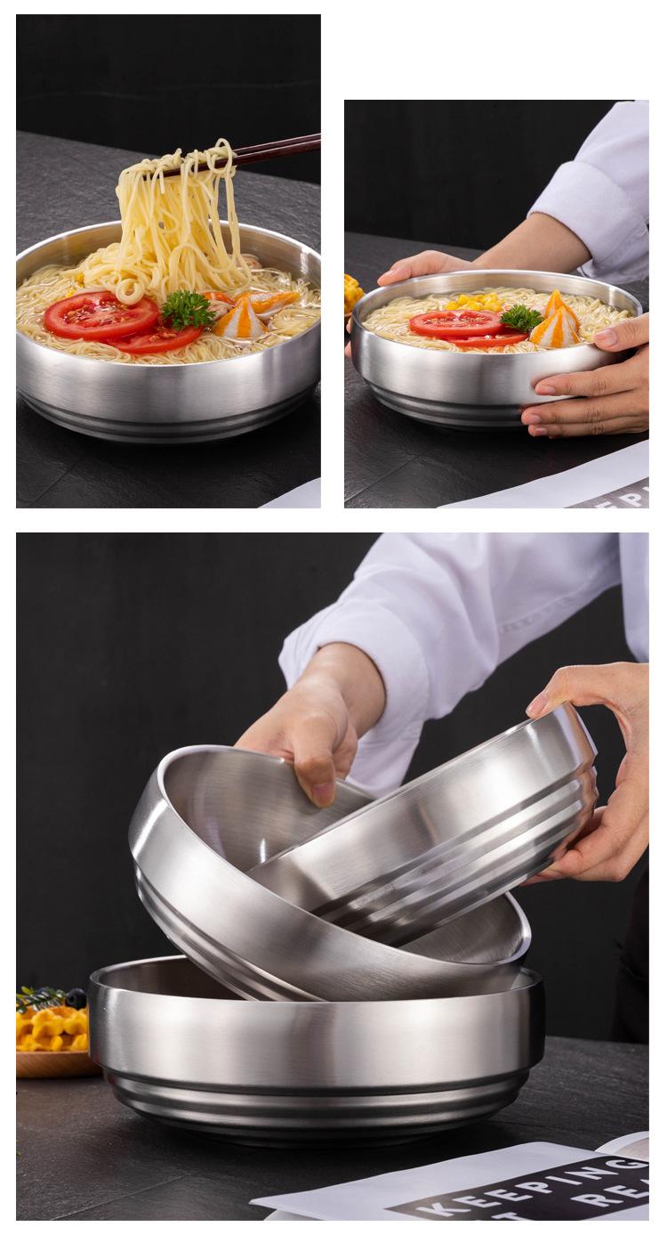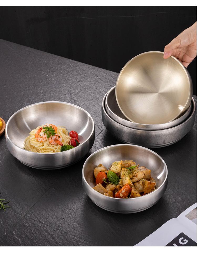 Tazón de Acero Inoxidable para Fideos Fríos Coreano Dorado Aislado de Doble Capa Fideos de Caracol Fideos Instantáneos Tazón Grande para Sopa Diámetro Grande Capacidad Ampliada