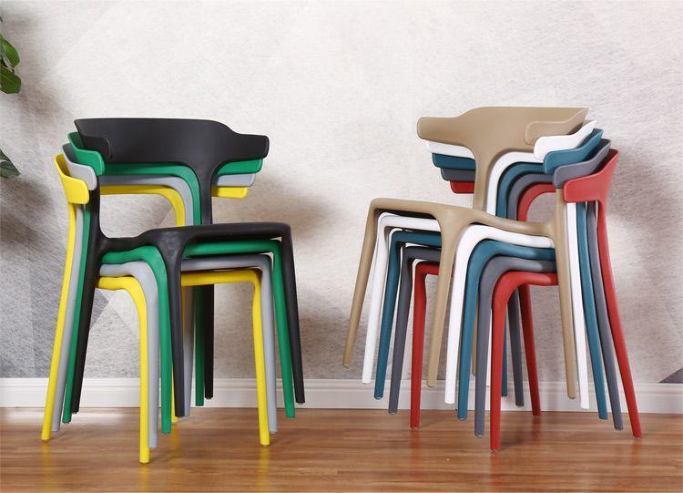 Silla de Comedor de Plástico Engrosado para el Hogar Silla de Comedor de Ocio Mesa de Comedor con Respaldo Taburete Moderno Simple Nueva Popular Silla de Cuerno