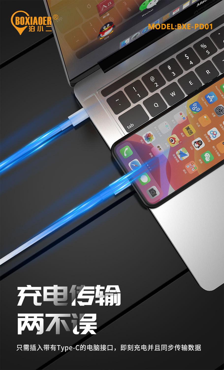 Compra Cable de Datos Bo Xiaoer Pd20W Carga Rápida Cable de Carga Lightning Dos-En-Uno Cable de Datos de Carga a Prueba de Explosiones 1m al por mayor en Joom.pro