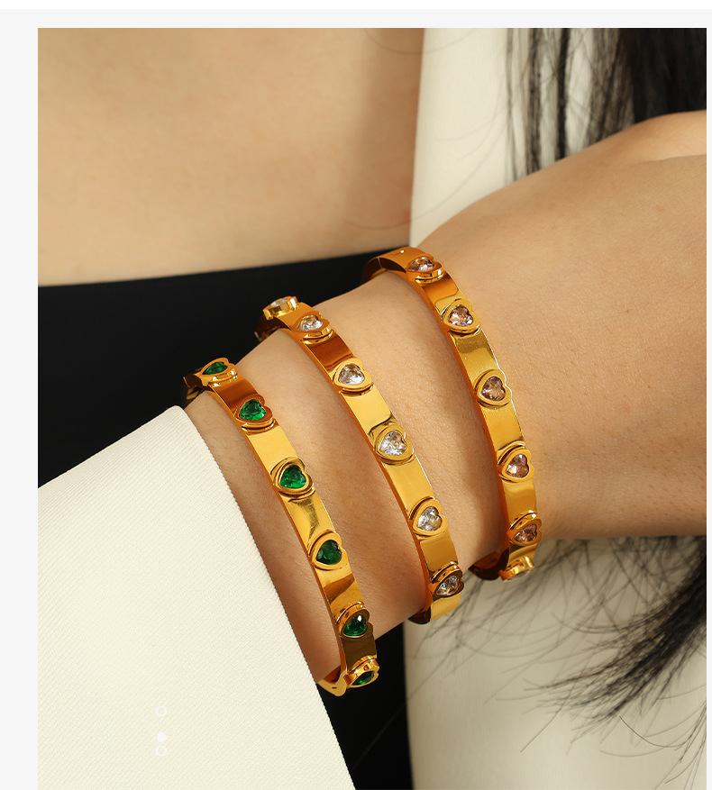 SZ122 white zirconium gold bracelet, SZ122 green zirconium gold bracelet, SZ122 light pink zirconium gold bracelet