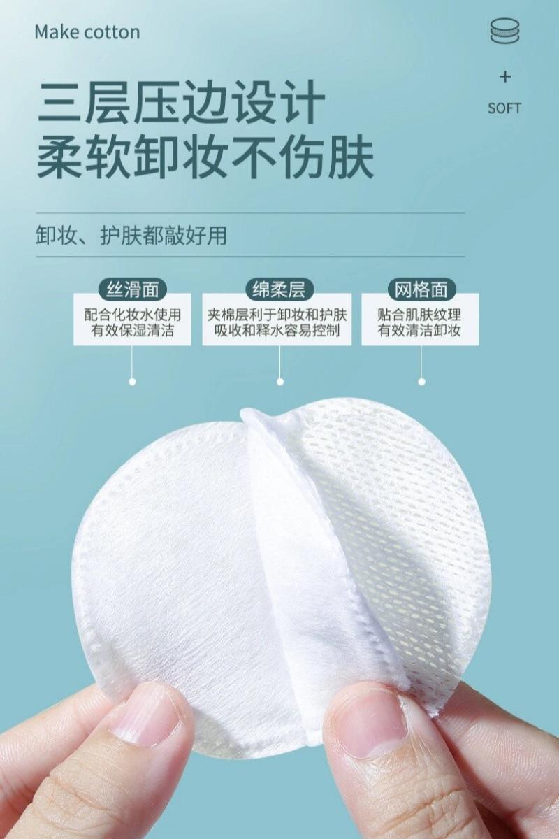 Compra Lote de algodón desmaquillante de belleza transfronterizo AB de doble cara, de tres capas, grueso, redondo, desechable, para cosméticos. al por mayor en Joom.pro