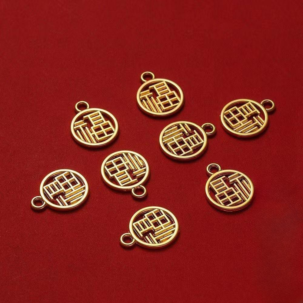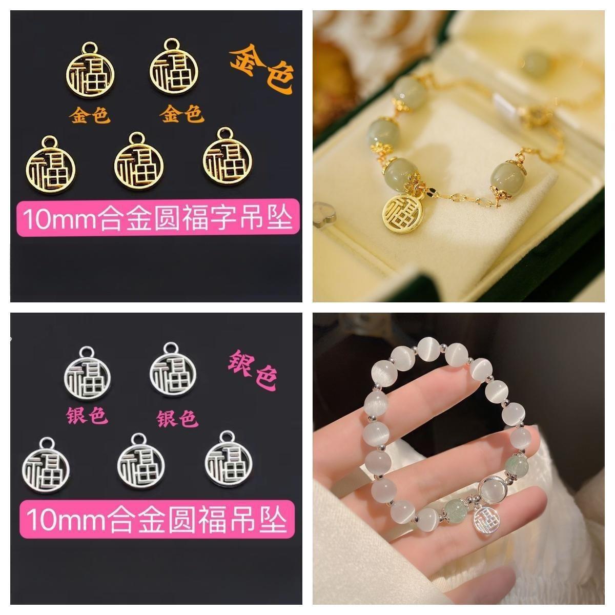 Accesorios de aleación de 10 mm Lucky Brand, personaje de la suerte, Lucky Lucky, pequeño colgante, pulsera artesanal mixta, colgante Ping An Fu