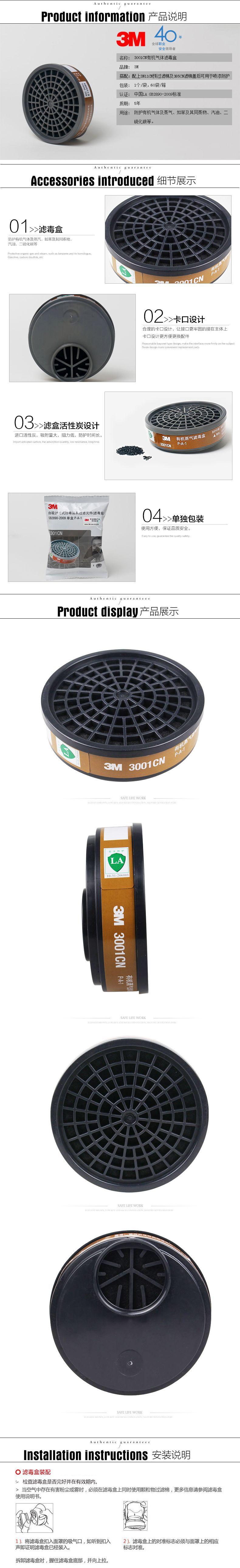 Caja de filtro antiolor y vapor antiorgánico 3M 3001CN para máscara de gas serie 3000