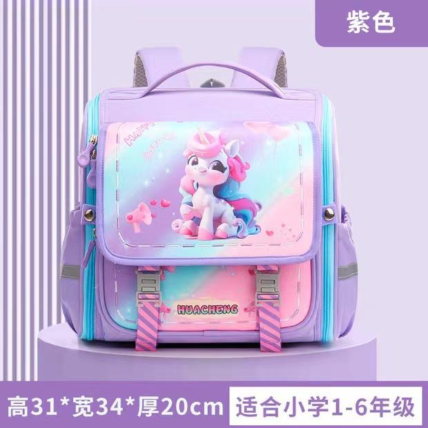 Mochila escolar para niños de primaria, nueva versión horizontal, gran capacidad, grado 1-3, impermeable, reducción de carga, protección para la columna vertebral, mochila de dibujos animados
