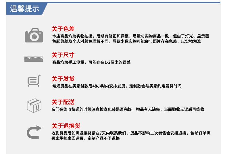 For customized items, please contact customer service
