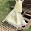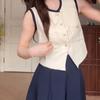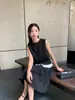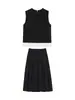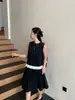 Traje de Top sin Mangas con Nuevo Dobladillo con Volantes Francés de Hongyi, Chaleco y Falda de Empalme de Colores Contrastantes, Conjunto de Dos Piezas para Verano