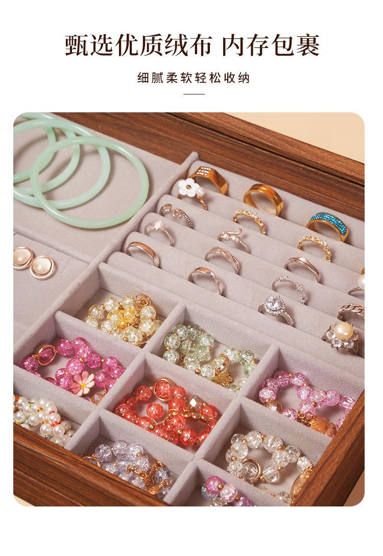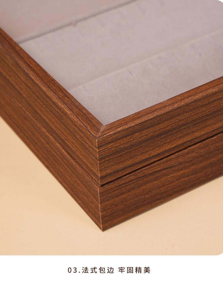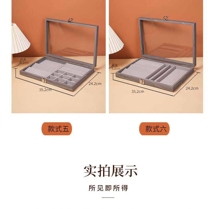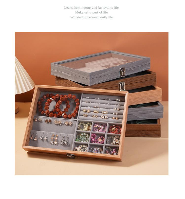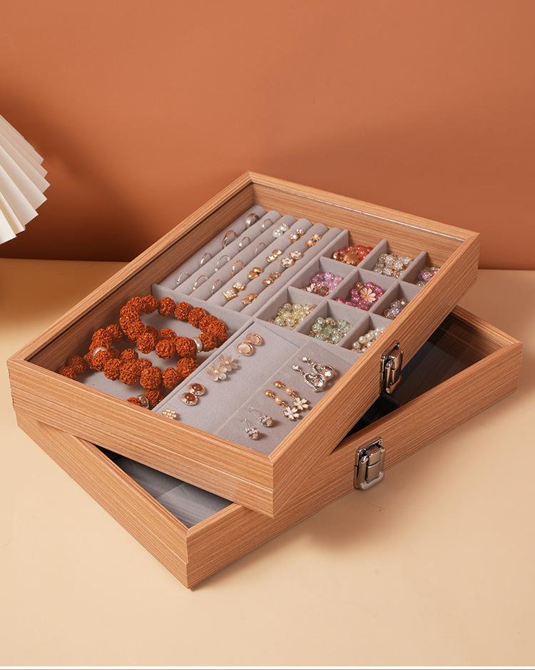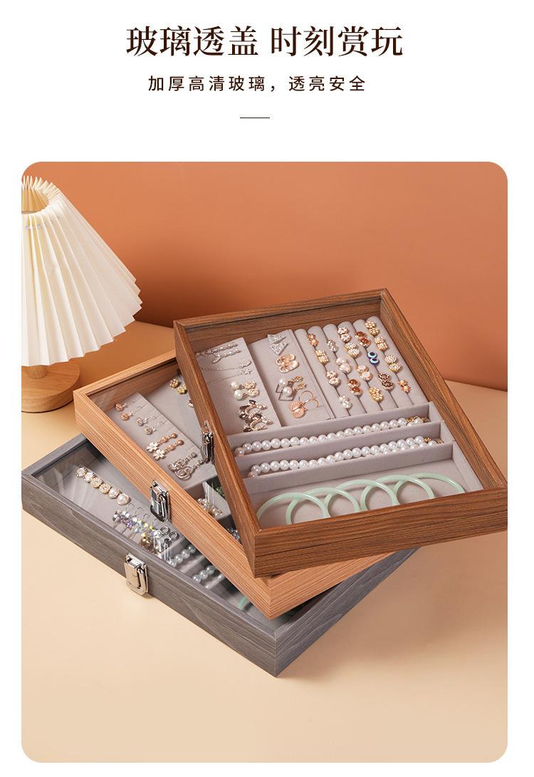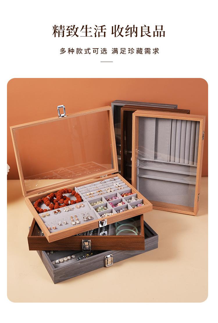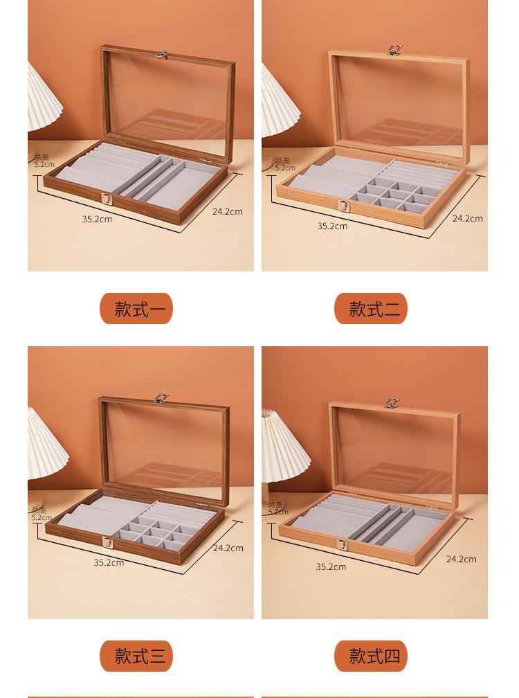 Caja de almacenamiento de joyas para anillos de color nogal, transparente, a prueba de polvo, para aretes, collares, joyas, acabado de joyas, joyero.