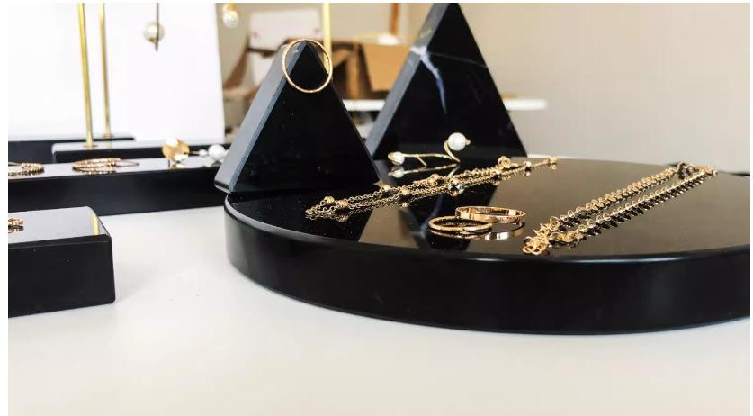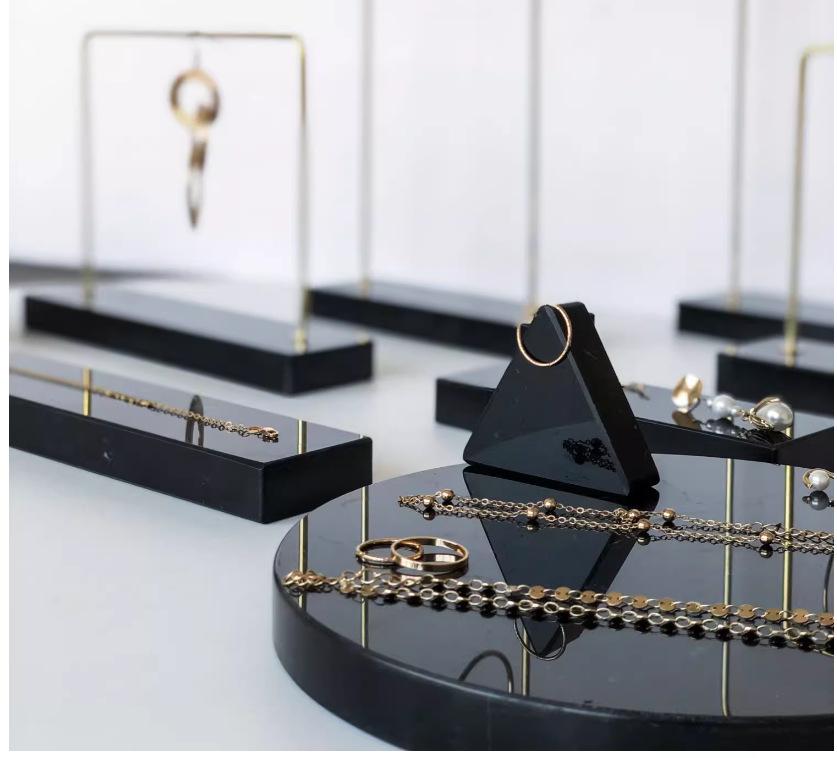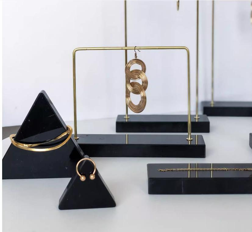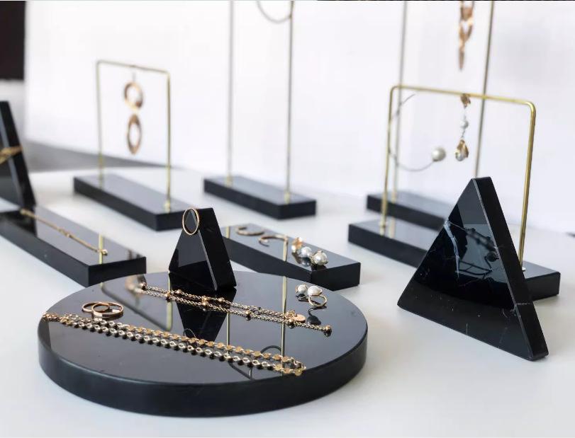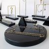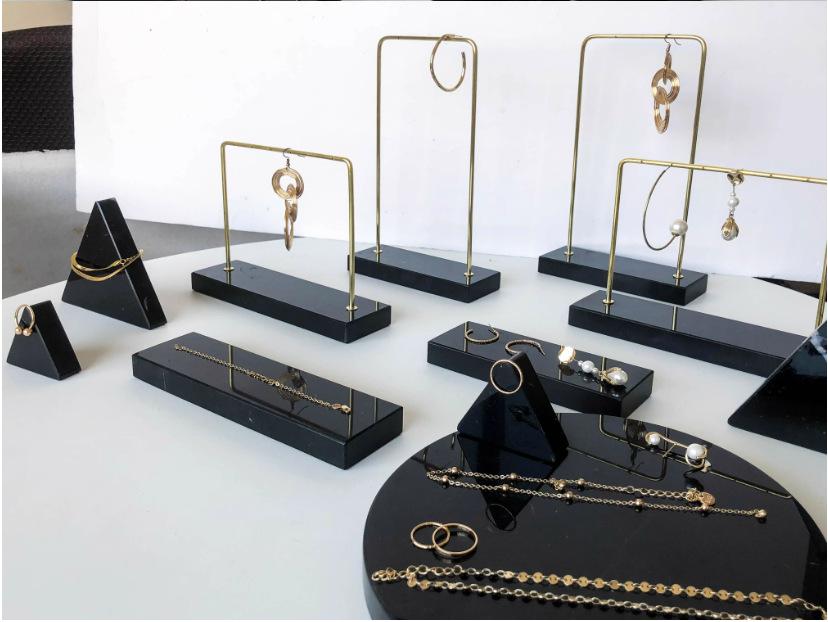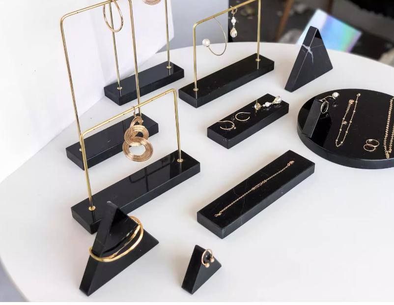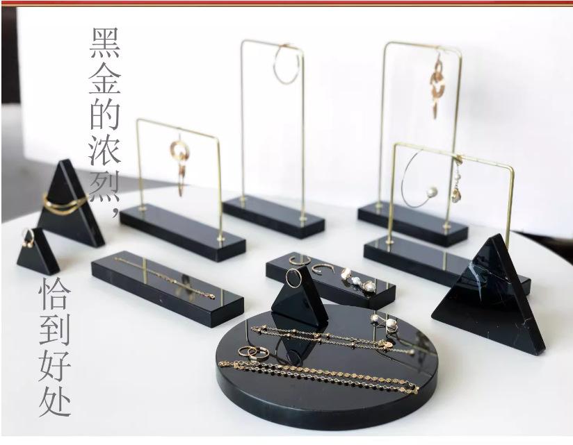 Expositor creativo de joyas en negro y dorado, para exhibir collares y aretes, accesorios de fotografía