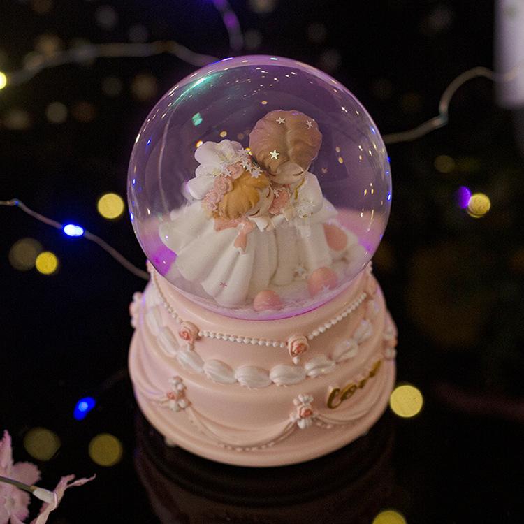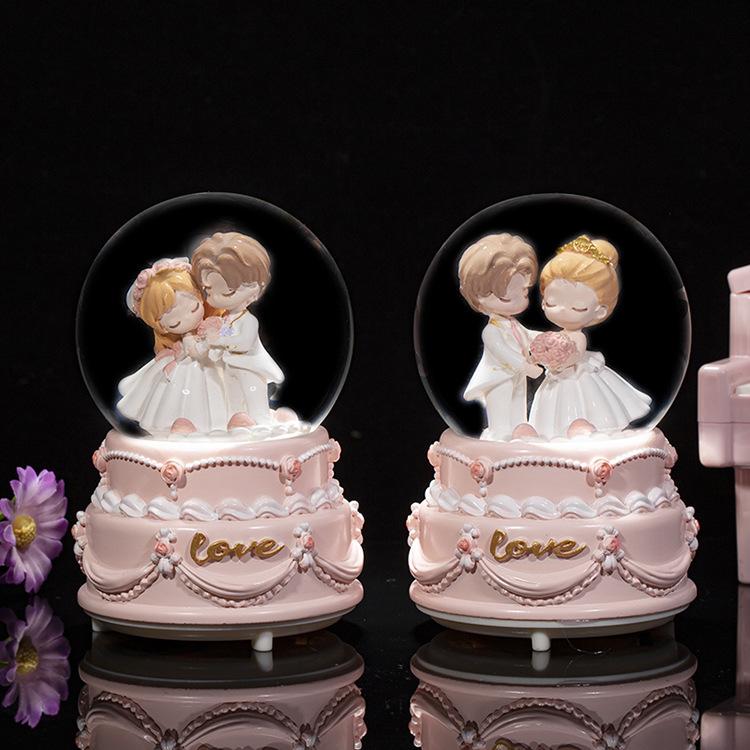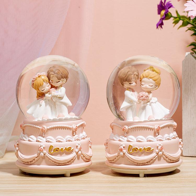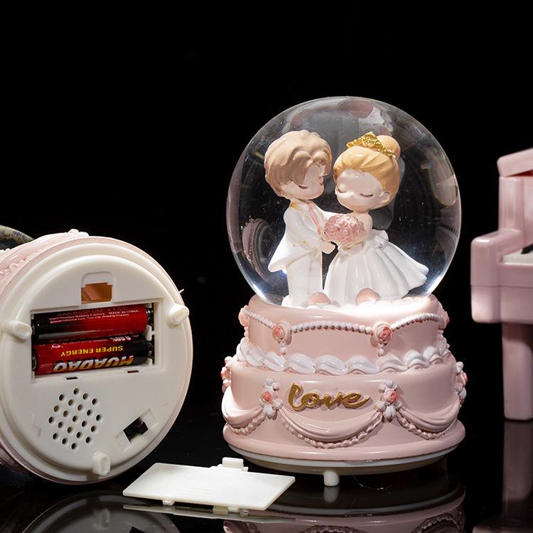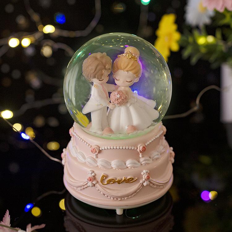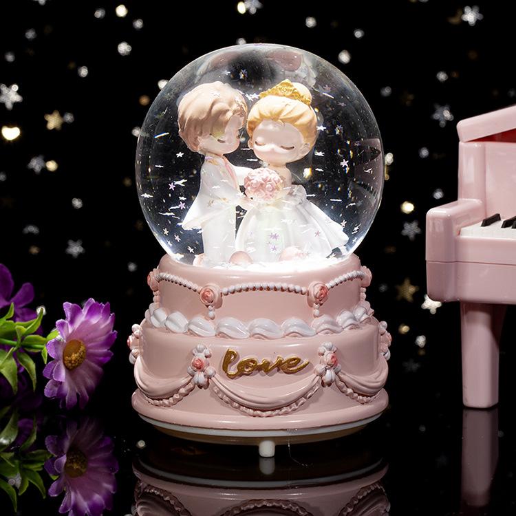Caja de música con forma de bola de cristal para parejas, ideal como regalo de Navidad para niños y niñas, decoración de escritorio, regalo de San Valentín y Tanabata.