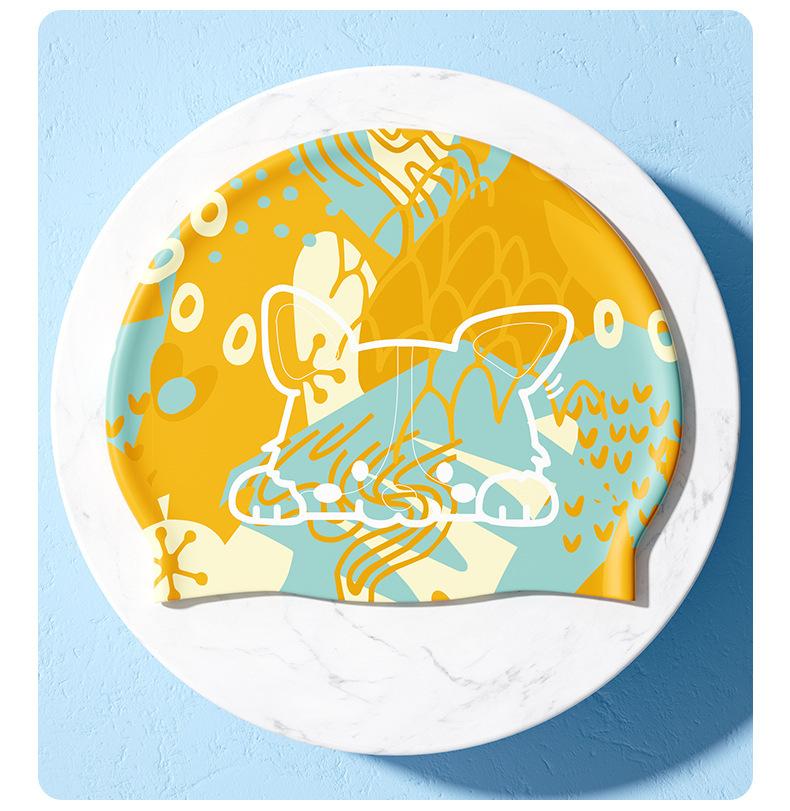 Blue yellow Chai dog [silicone swimming cap]]
