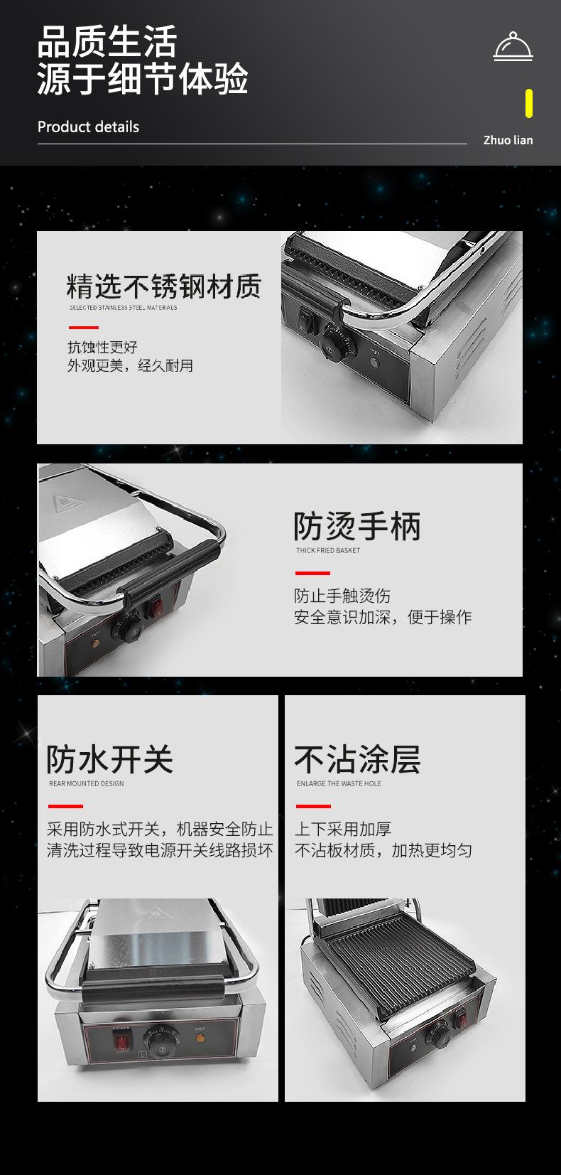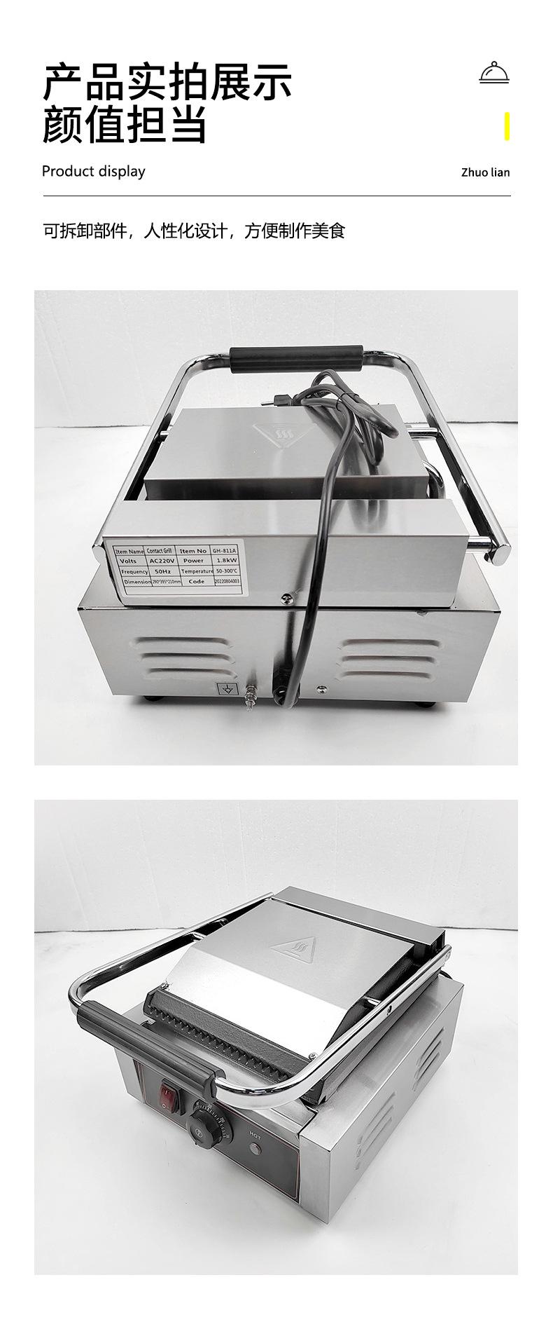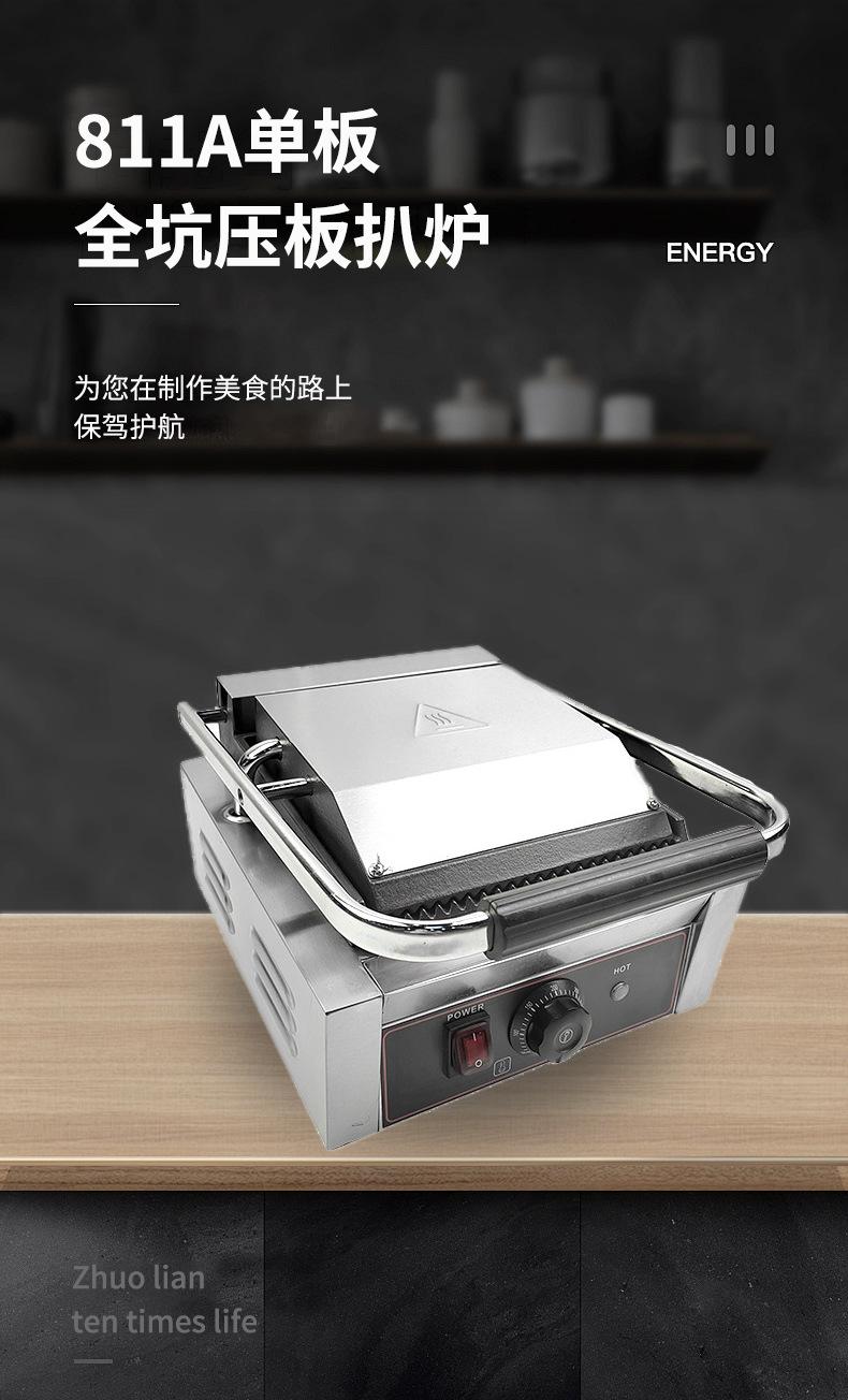 Máquina Sandwich de una Sola Placa Rayas en Relieve Máquina Panini Barbacoa Hogar Eléctrica Sartén para Hotcakes Especial Comercial Plancha de Presión