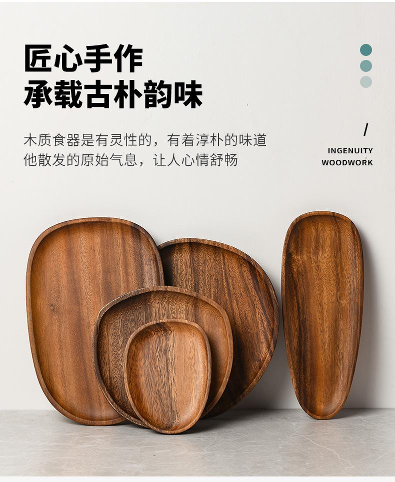 Plato de Semillas de Nogal de Madera Estilo Japonés Madera Maciza Bandeja para Snacks Fruta Postre Plato de Postre de Madera de Acacia Creativo