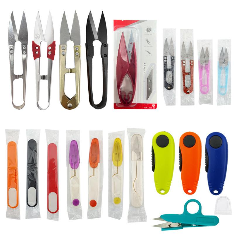 Compra Tijeras de hilo de plástico con resorte en forma de U, tijeras para hilo de punto de cruz, tijeras de pesca, tijeras de costura, tijeras pequeñas de colores para el hogar. al por mayor en Joom.pro