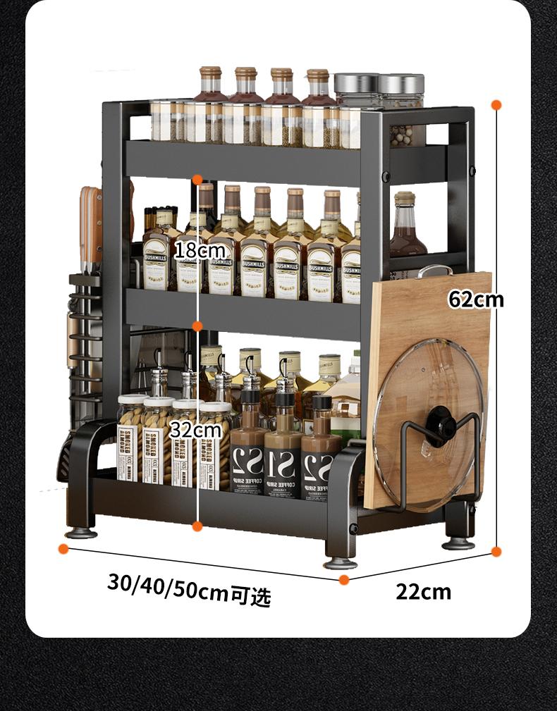 Black double layer 50cm long with cutting board holder + knife and chopsticks holder✓✦