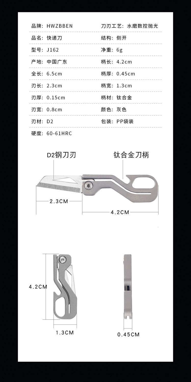 Mini Edc Navaja Plegable Portátil para Exterior Mango de Aleación de Titanio Hoja de Acero D2 Herramienta Navaja Llavero Express