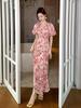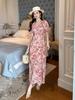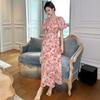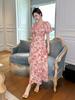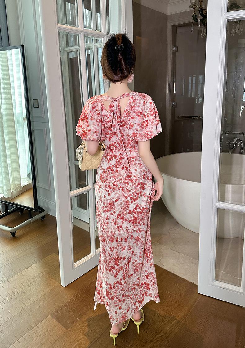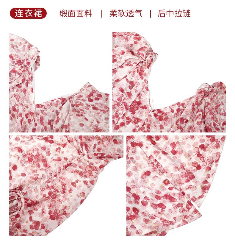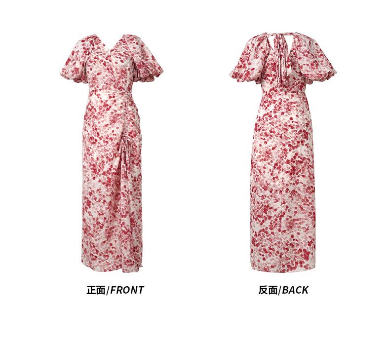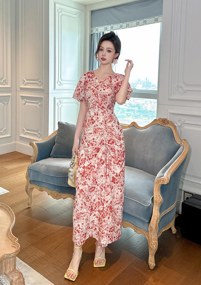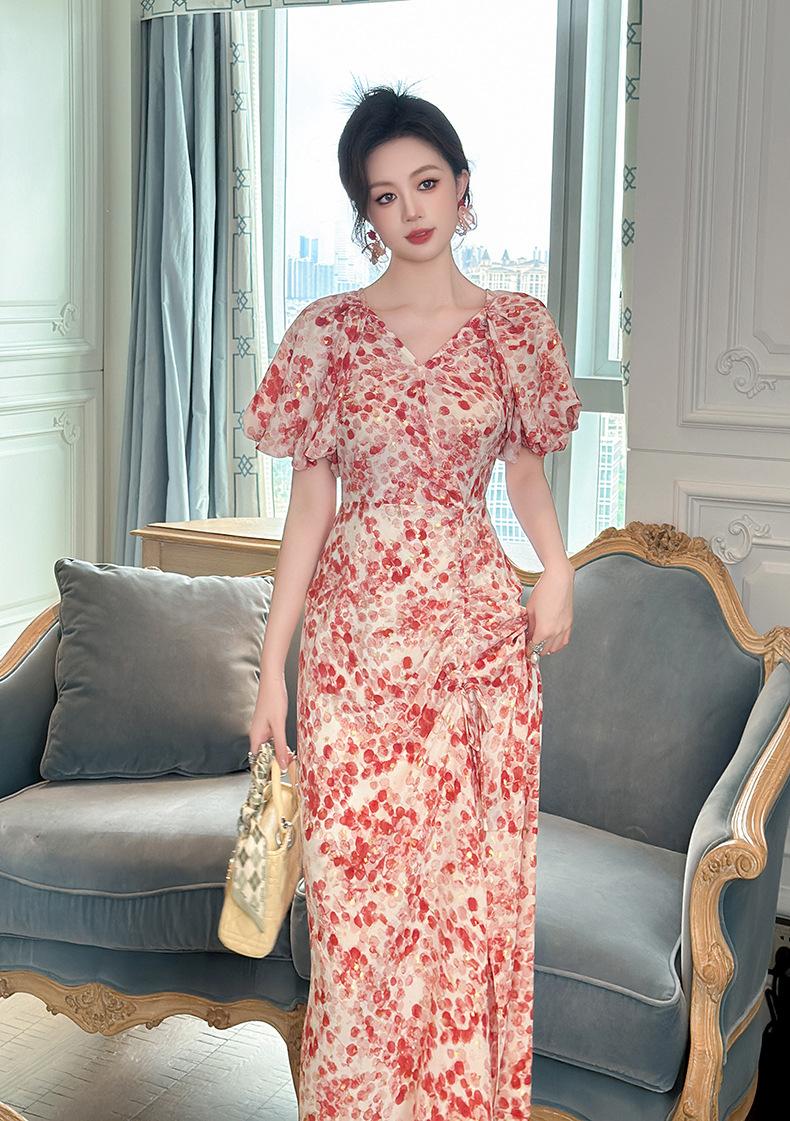 2025 Nuevo Verano Vestido Floral Plisado para Mujer Francés Cuello en V Manga Abullonada Cintura Adelgazante Look 30921