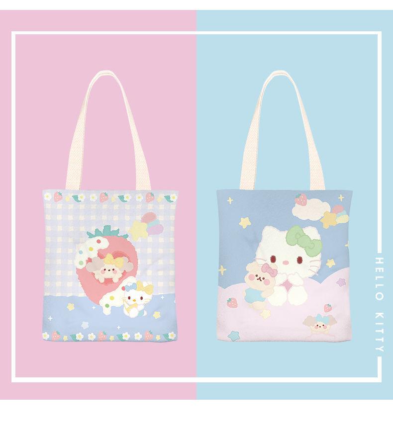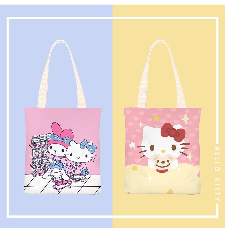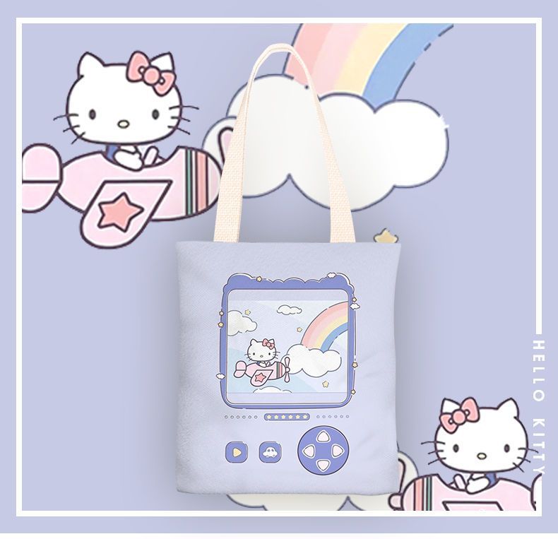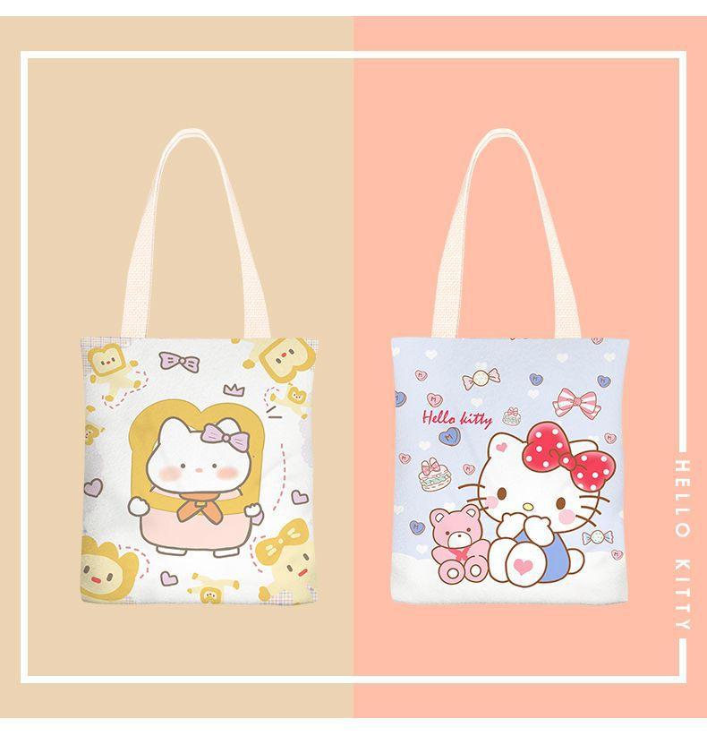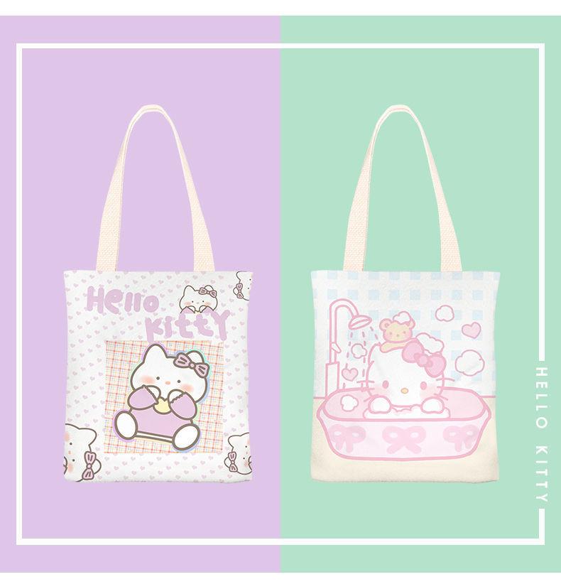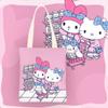 Bolso de Lona Kt Cat de Gran Capacidad Bolso de Hombro Bolso Tote para Compras Bolso de Mano para Mujer Almacenamiento Estilo Cremallera