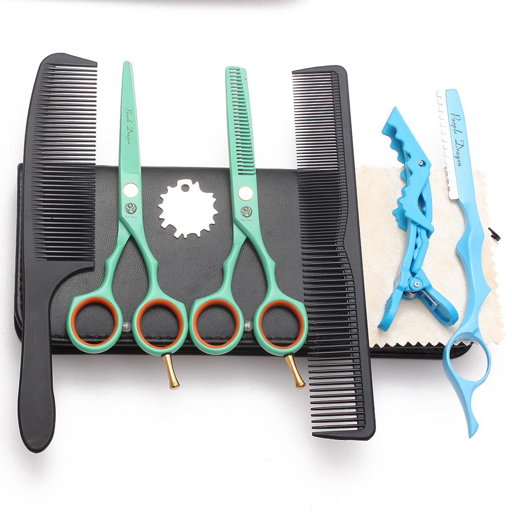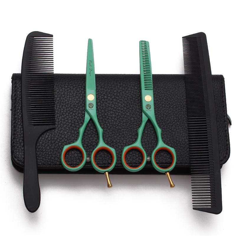 Tijeras profesionales de corte de pelo verdes de 6E3X5.5 pulgadas, herramienta de peluquería, tijeras planas para flequillo, tijeras para recortar cabello fino y roto.