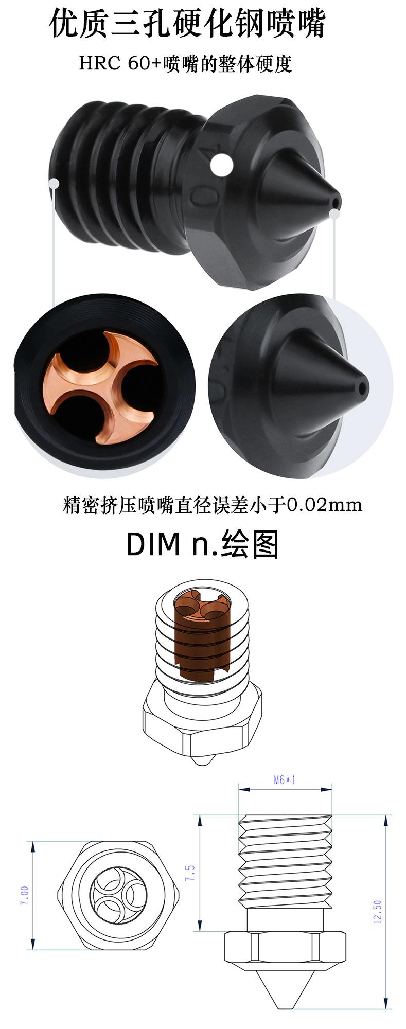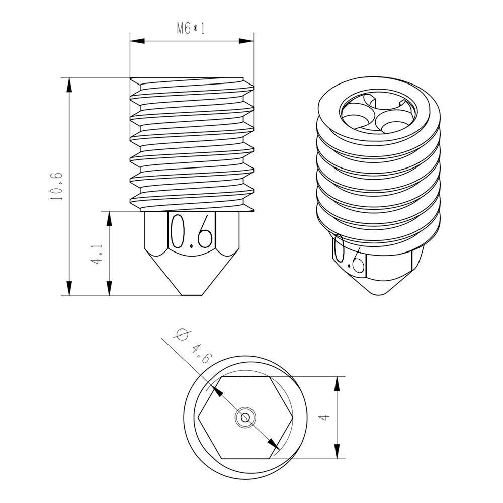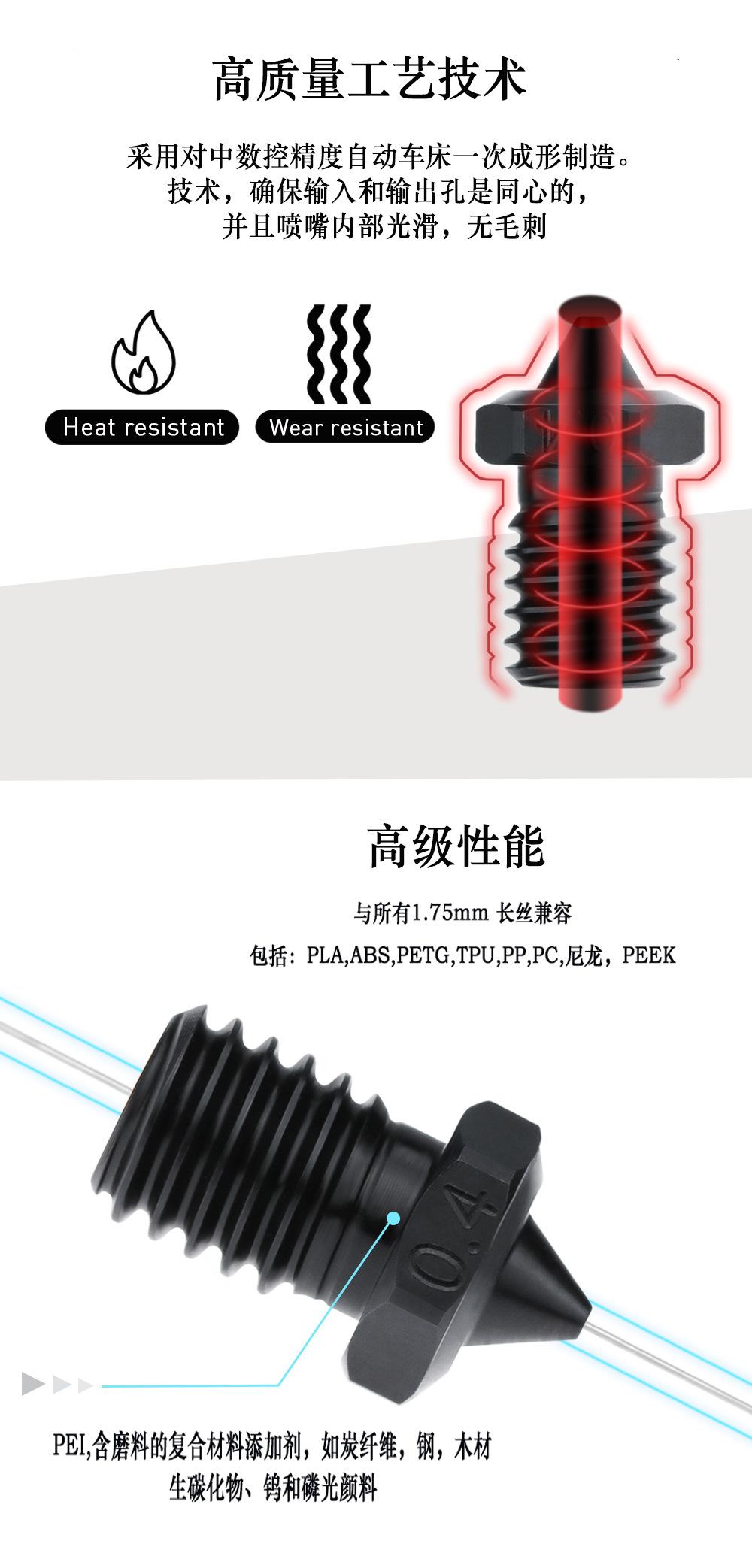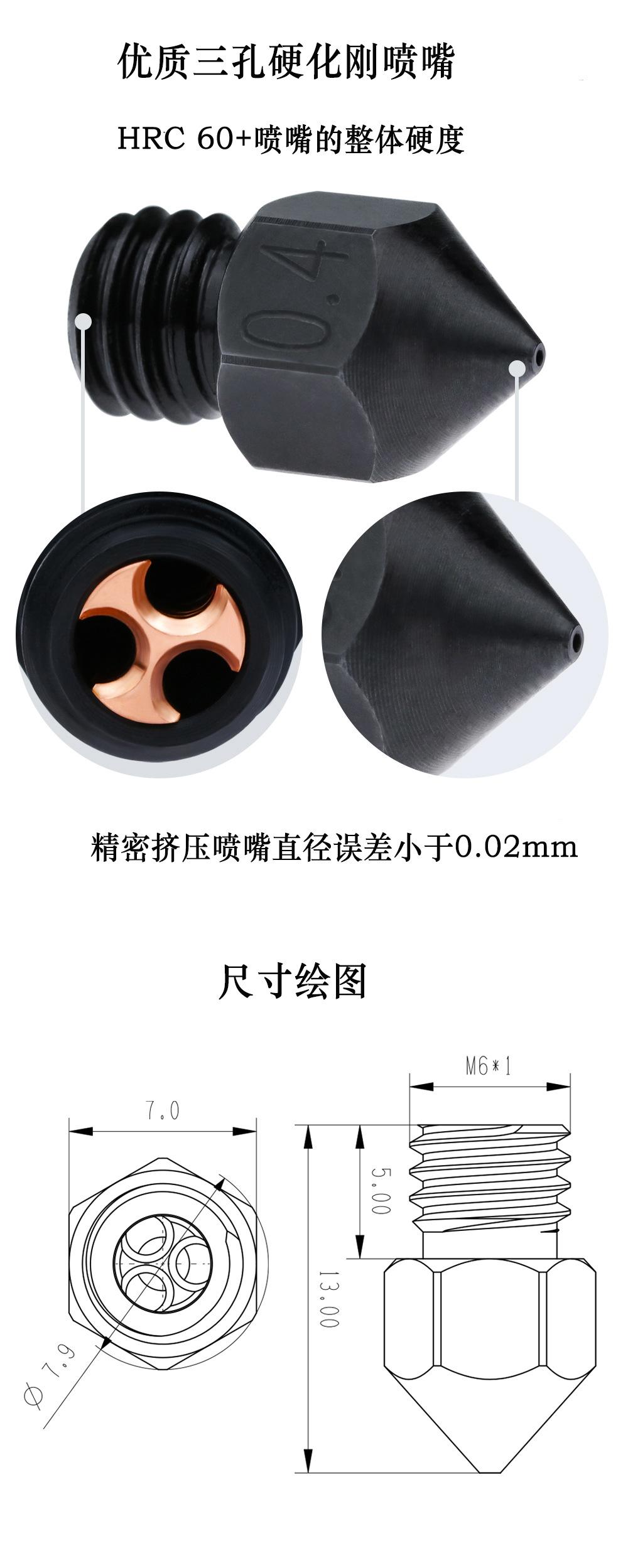 v6 hardened rigid clone nozzle 0.4mm, v6 hardened rigid clone nozzle 0.6mm, v6 hardened rigid clone nozzle 0.8...