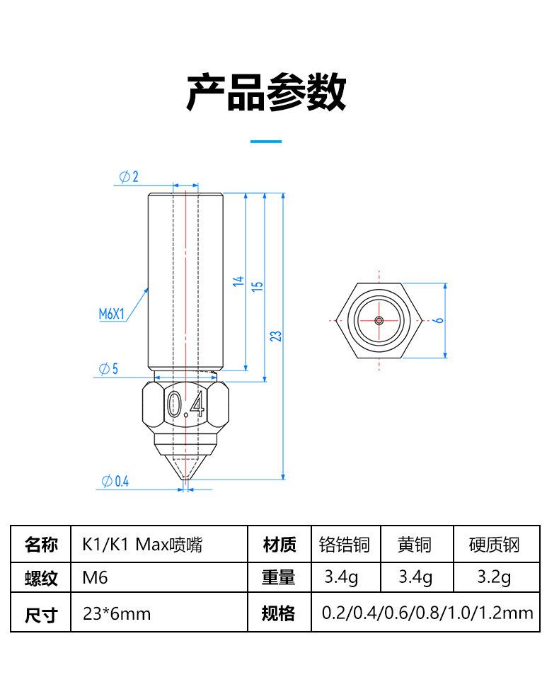 k1 brass nozzle mm/0.2mm, k1 brass nozzle mm/0.4mm, k1 brass nozzle mm/0.6mm, k1 brass nozzle mm/0.8mm, k1 bra...