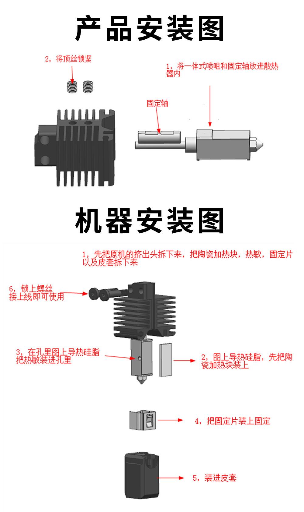 Hardened steel nozzle hot end sleeve machine (1 nozzle), Tuozhu X1/P1P extrusion head kit temperature measurem...