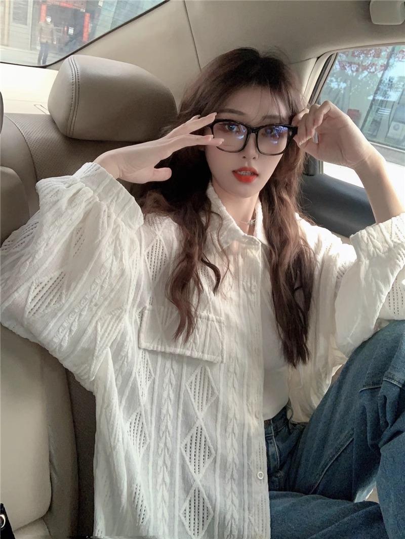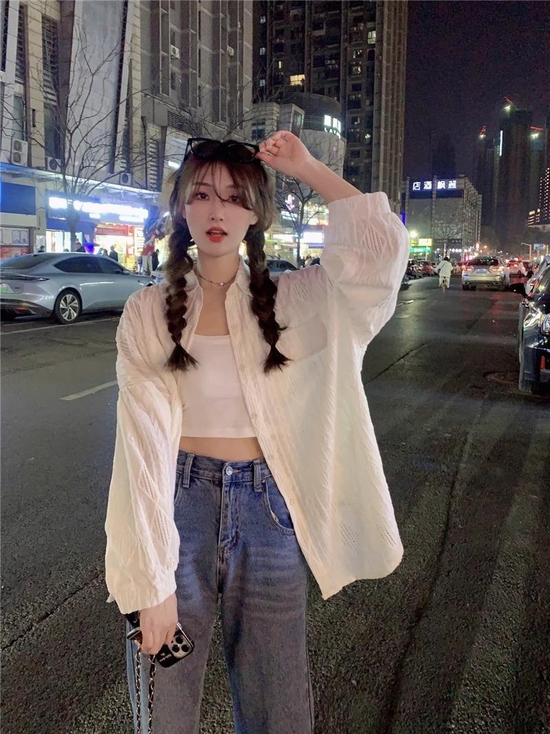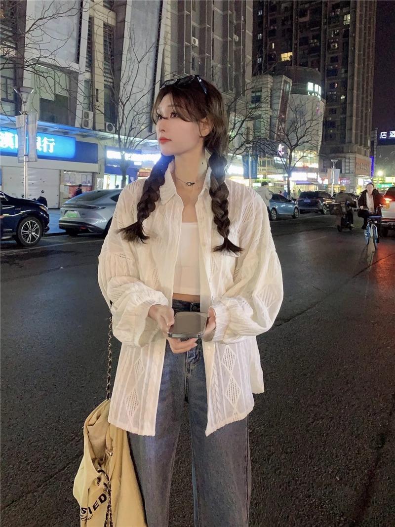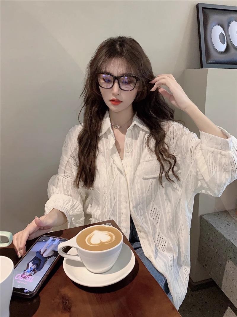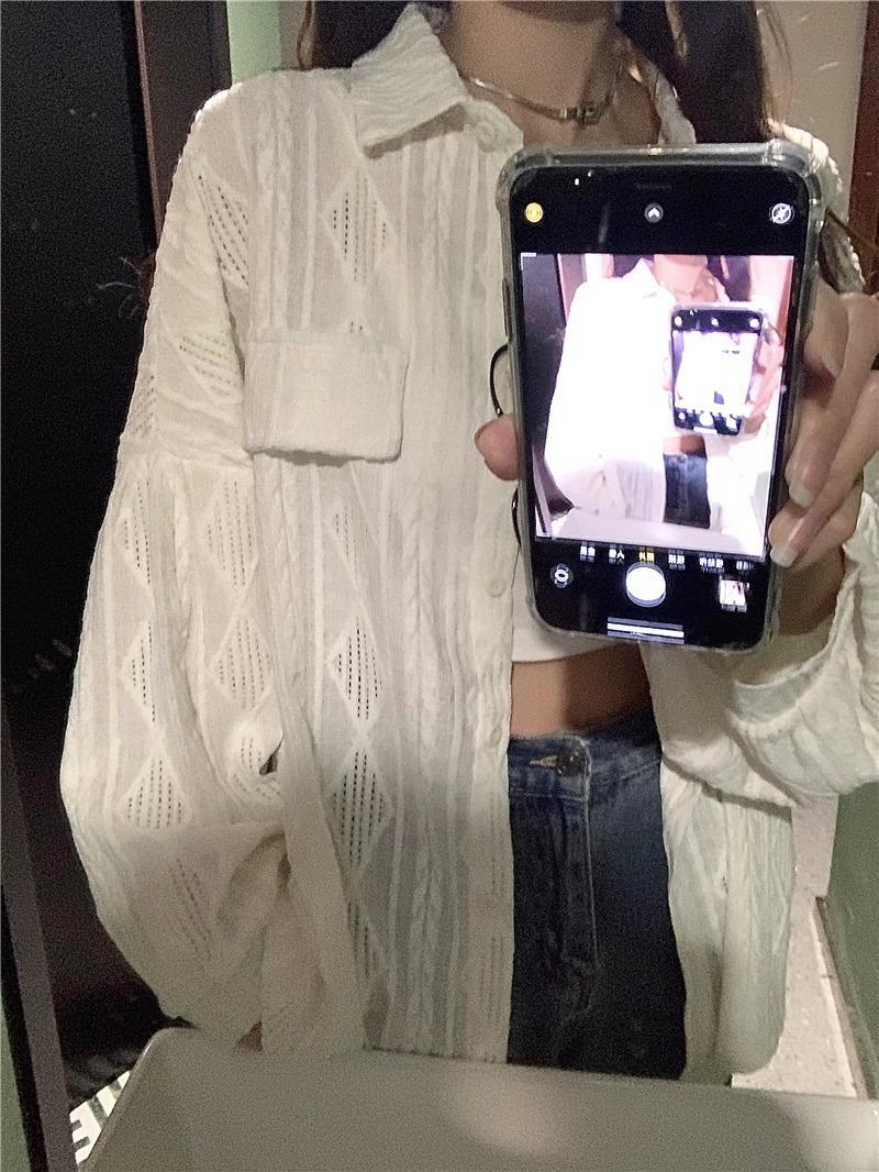 Camisa blanca de diseño nicho para mujer, nueva primavera/verano 2024, informal, otoño, con huecos, abrigo superior