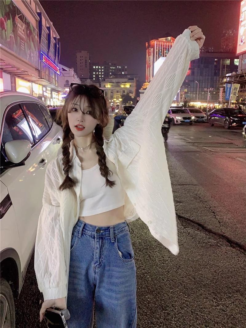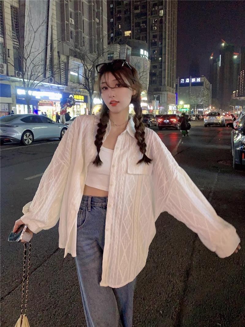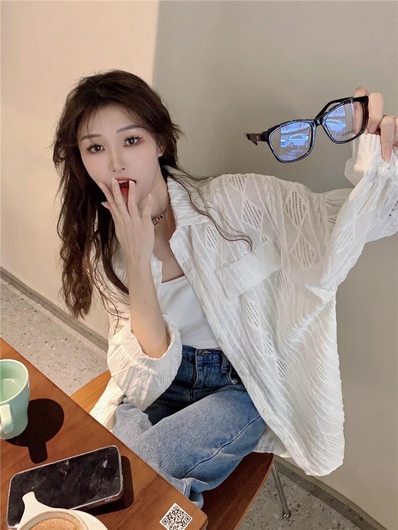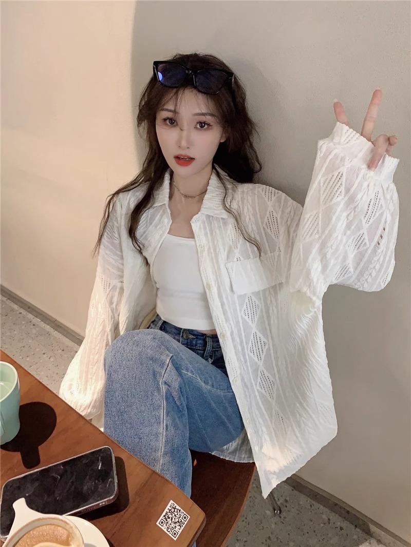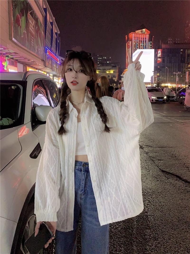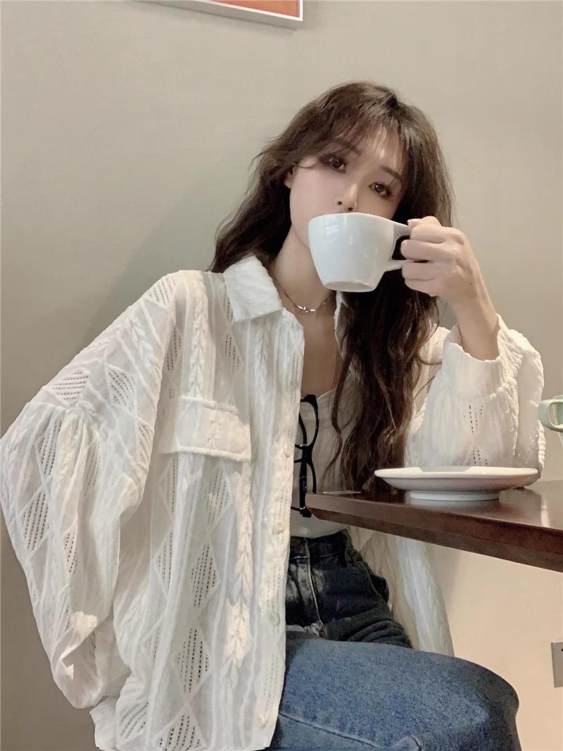 Camisa blanca de diseño nicho para mujer, nueva primavera/verano 2024, informal, otoño, con huecos, abrigo superior