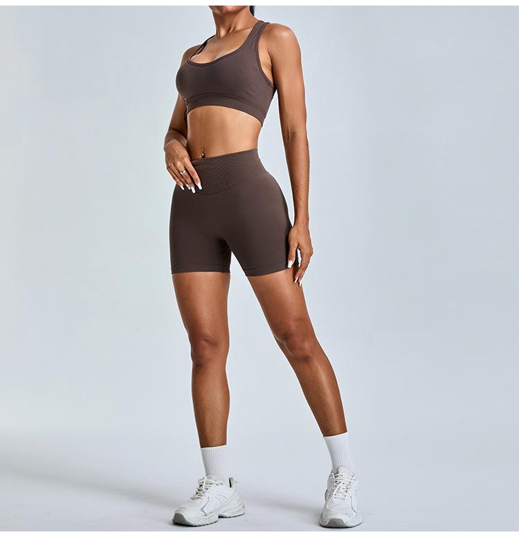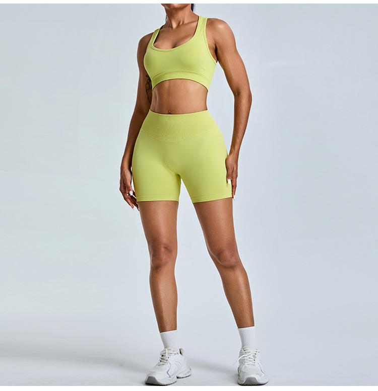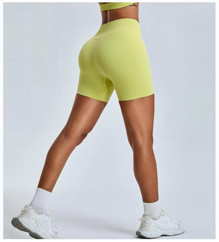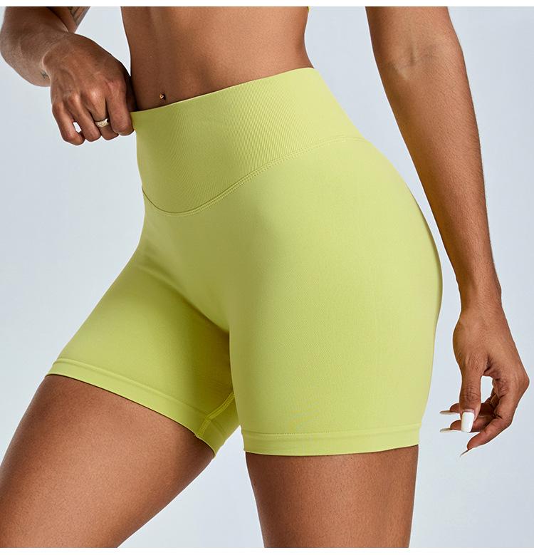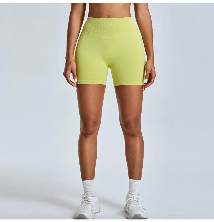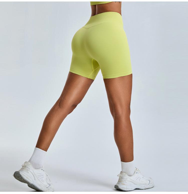 Pantalones cortos de yoga de cintura alta sin costuras, nuevos, de estilo europeo y americano, para levantamiento de abdomen, fitness, running y secado rápido.