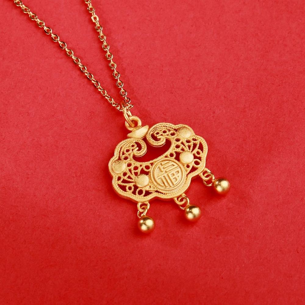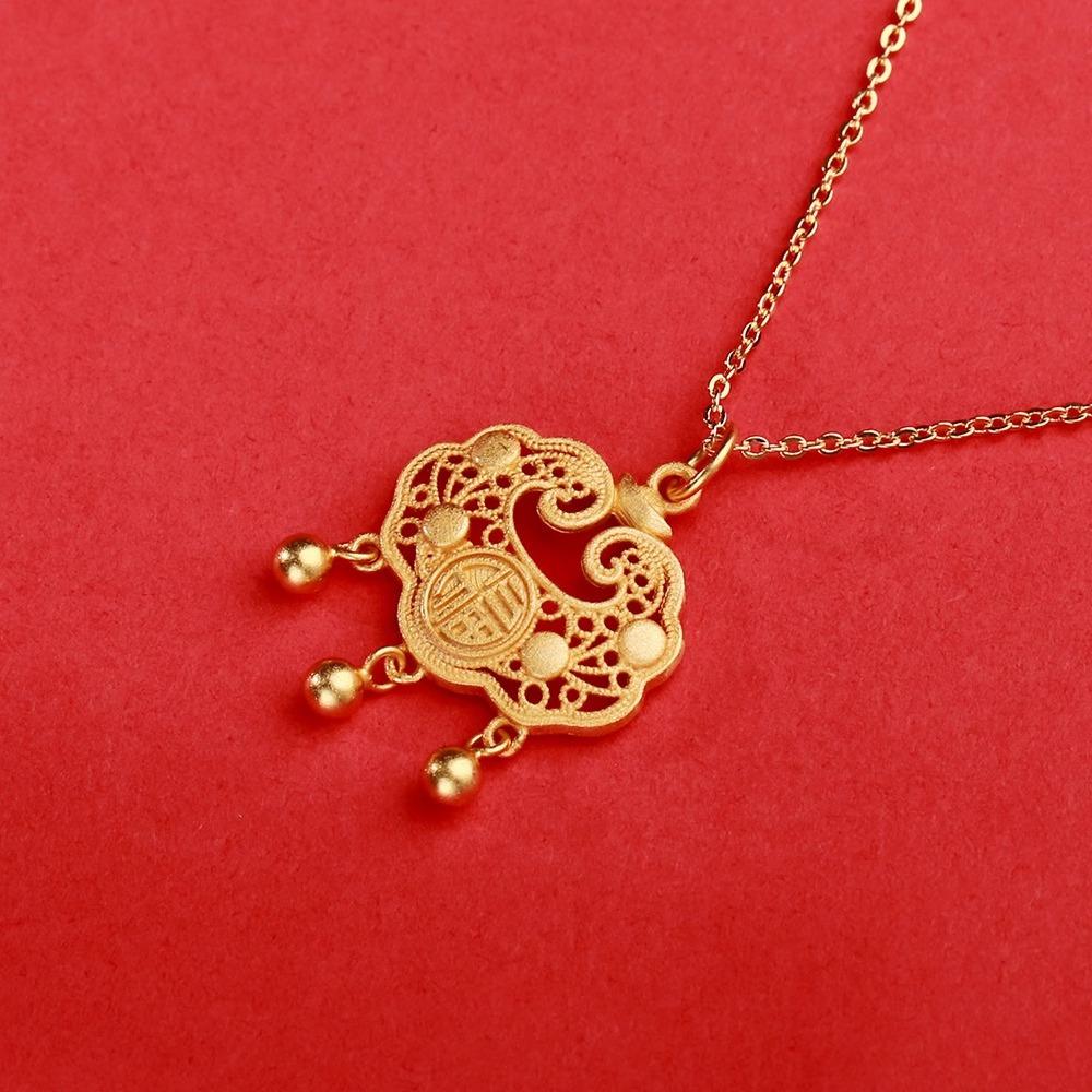 FX439 Copper Pendant [Hollow] Safe Lock Necklace-Gold