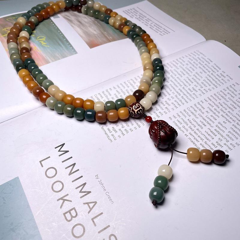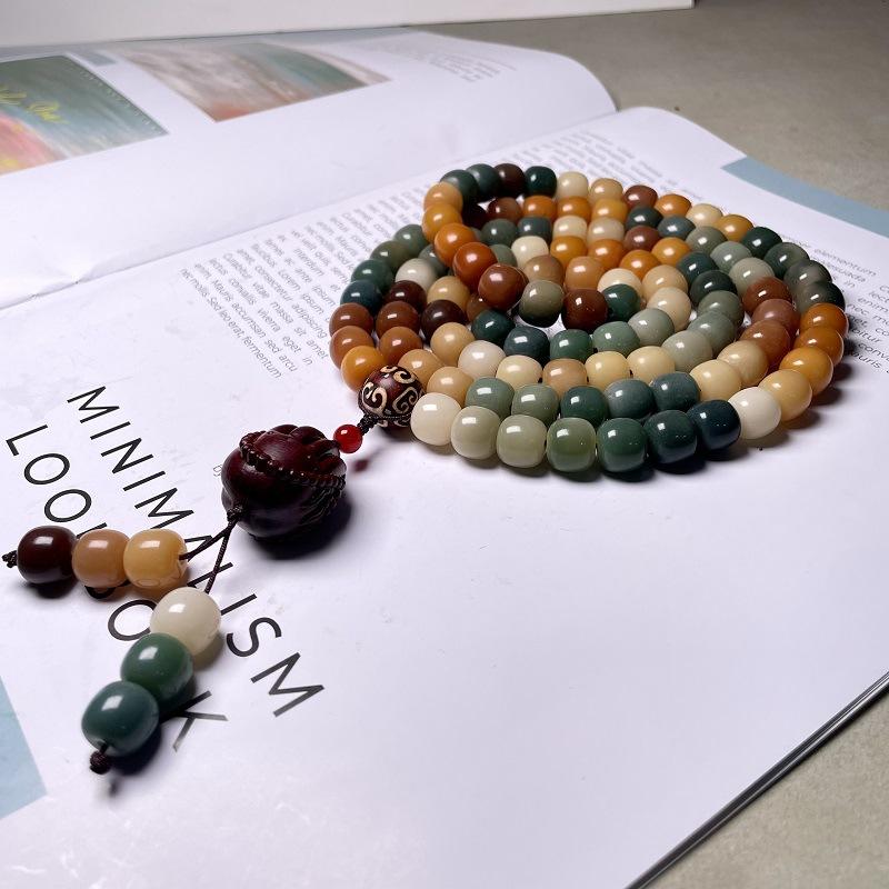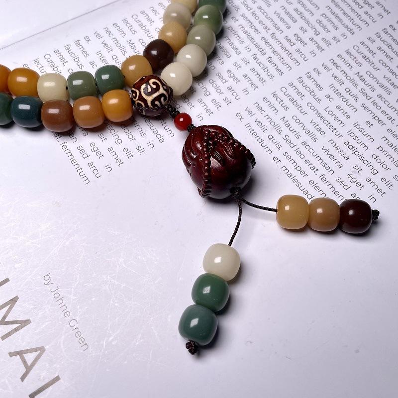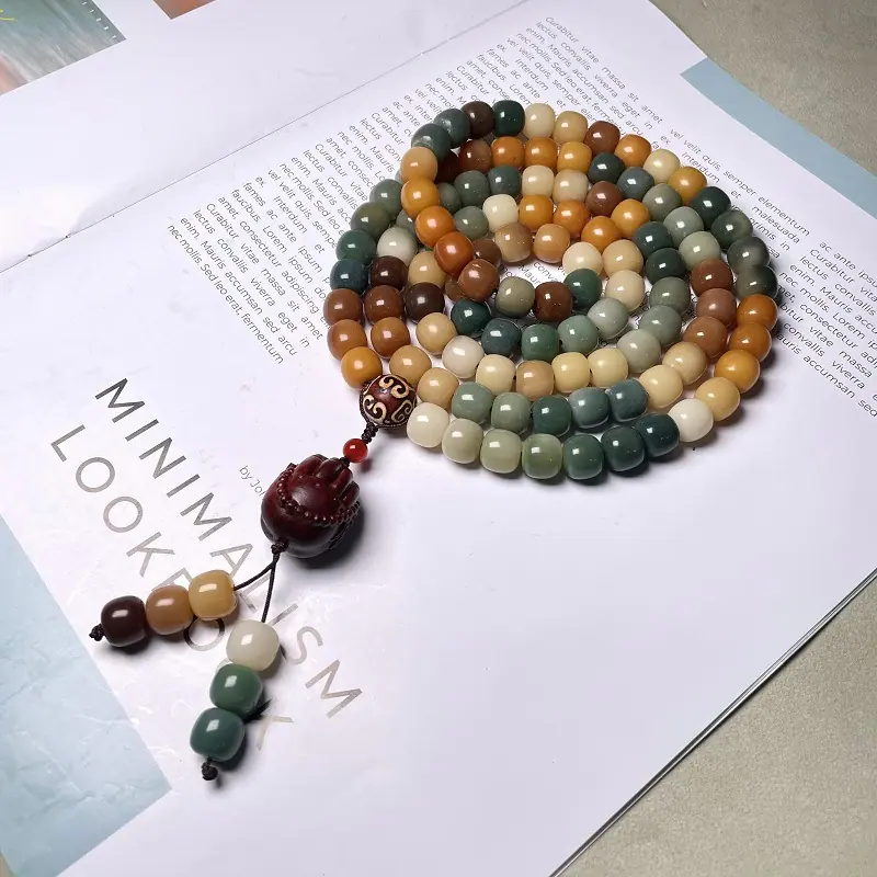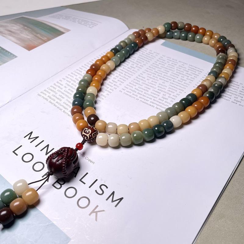 Jade Blanco Bodhi Color Dunhuang Estilo Antiguo 108 Sándalo Colgante Mano de Buda Pulsera Collar de Cuentas Budistas para Hombres y Mujeres