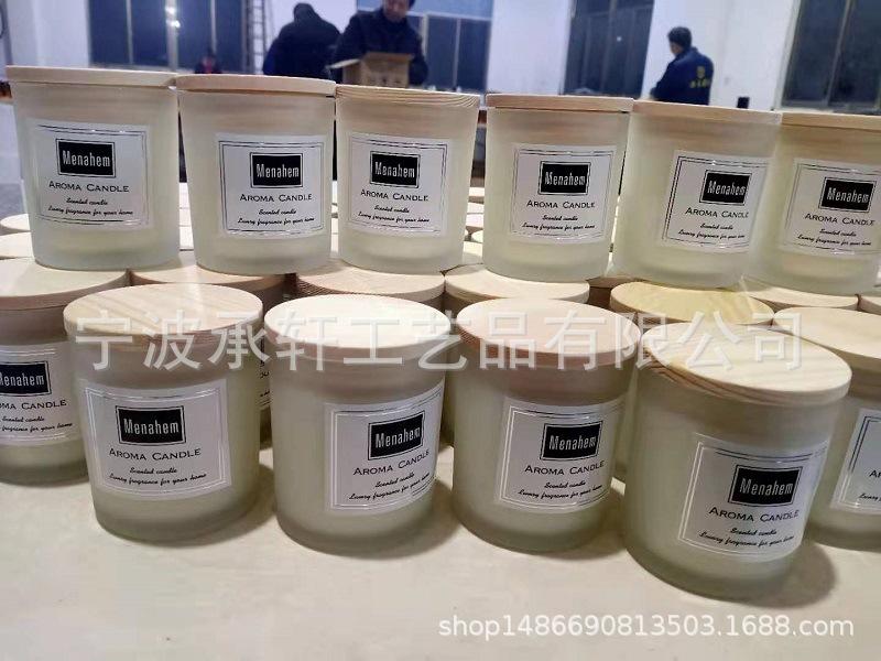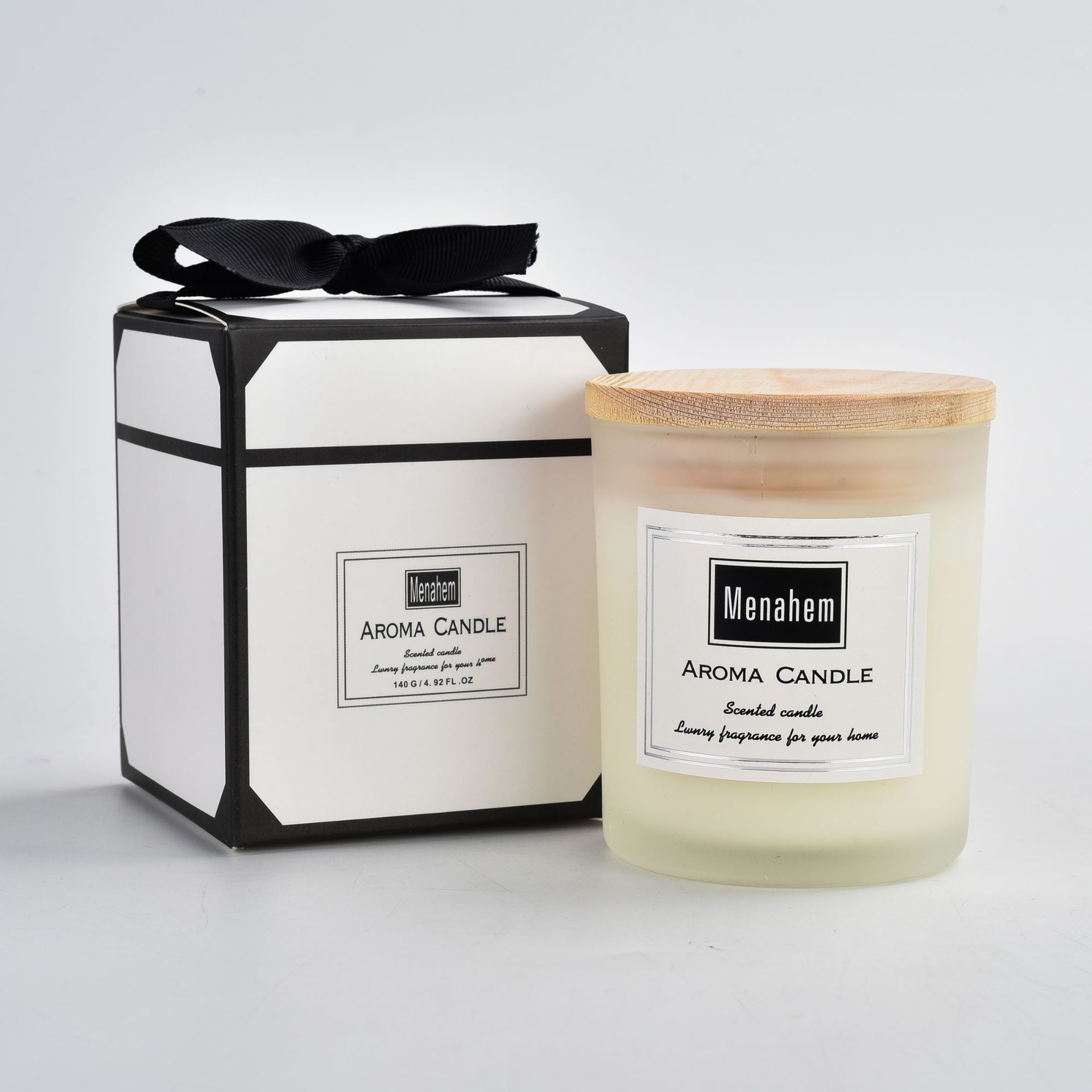 Tapa de Madera Vaso para Velas Escarchado Vela de Aromaterapia Aceite Esencial Vegetal Cera de Soja Interior Sin Humo Regalo Fragancia