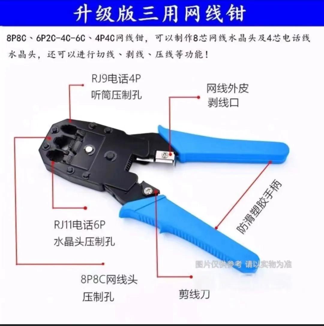 [Alicates] Abrazadera de red, probador de herramientas de red, categoría 5, categoría 6, línea de red, cabeza de cristal
