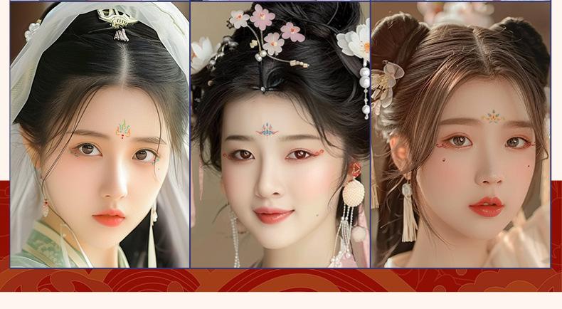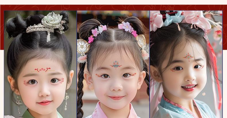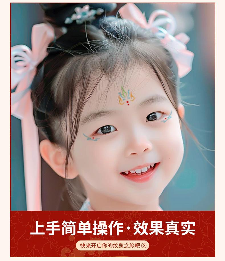 Pegatinas para cejas de niños, pegatinas para la frente con ropa china, tatuajes antiguos con estampado de frente para hombres y mujeres, pegatinas impermeables para bebés con rendimiento activo.