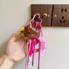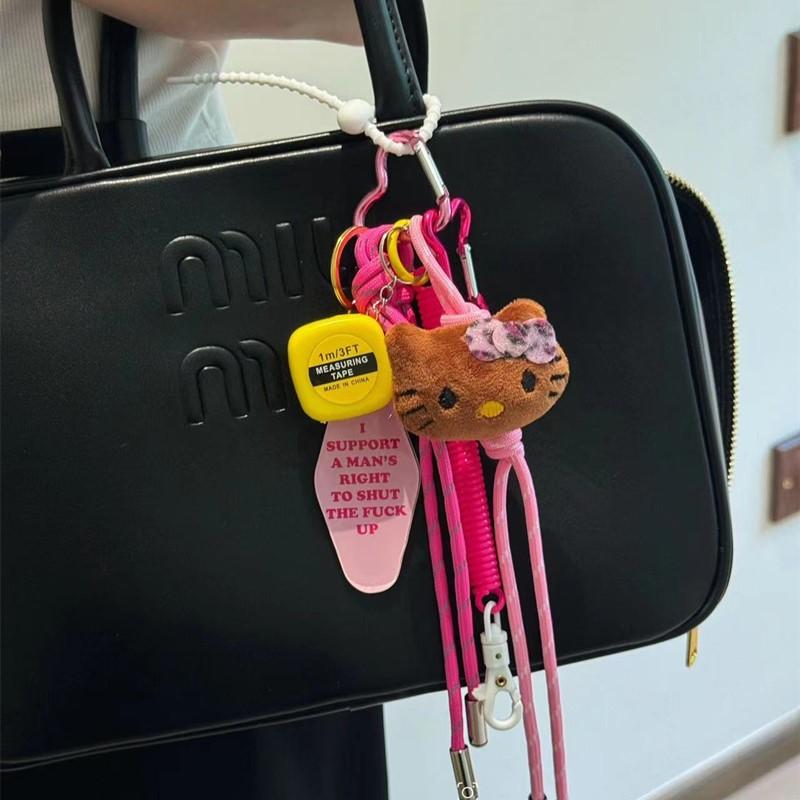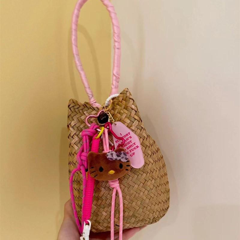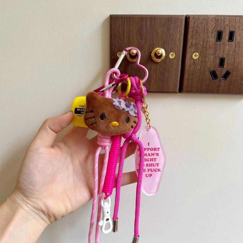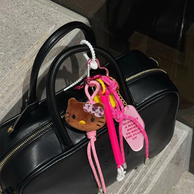 Llavero con colgante de Hello Kitty con estampado de leopardo de Miu Wind, regalo original DIY hecho a mano con borde cruzado