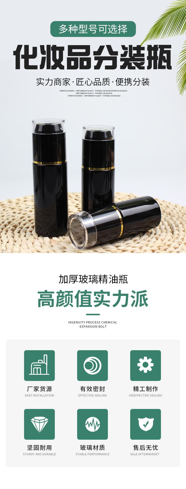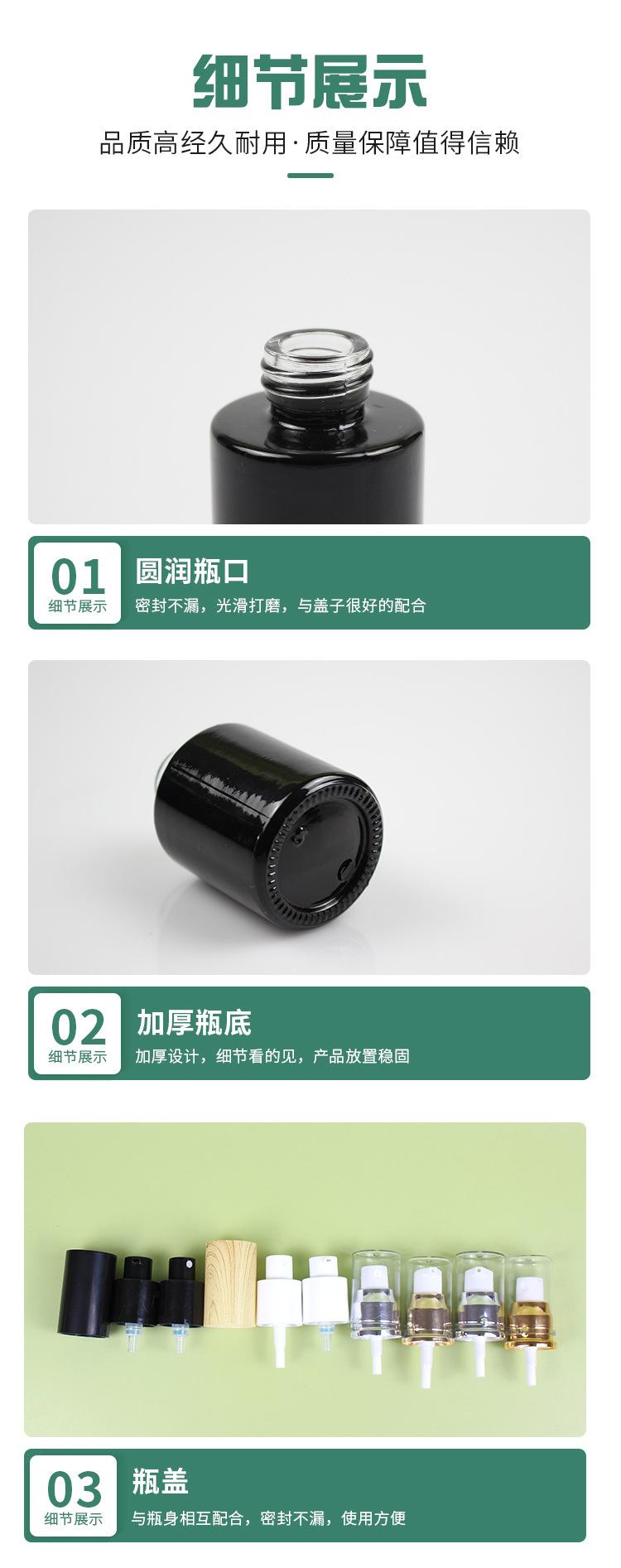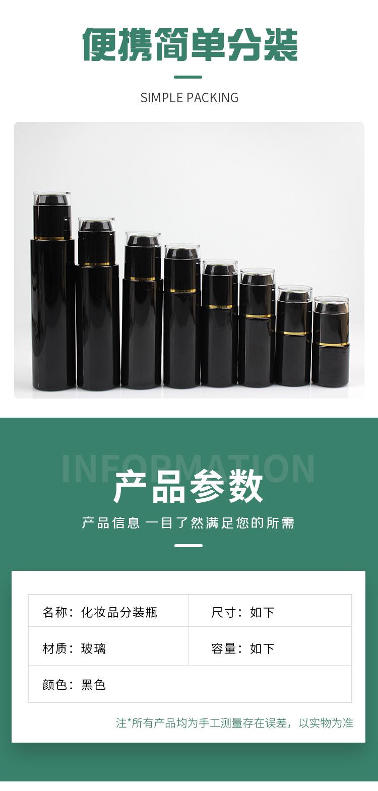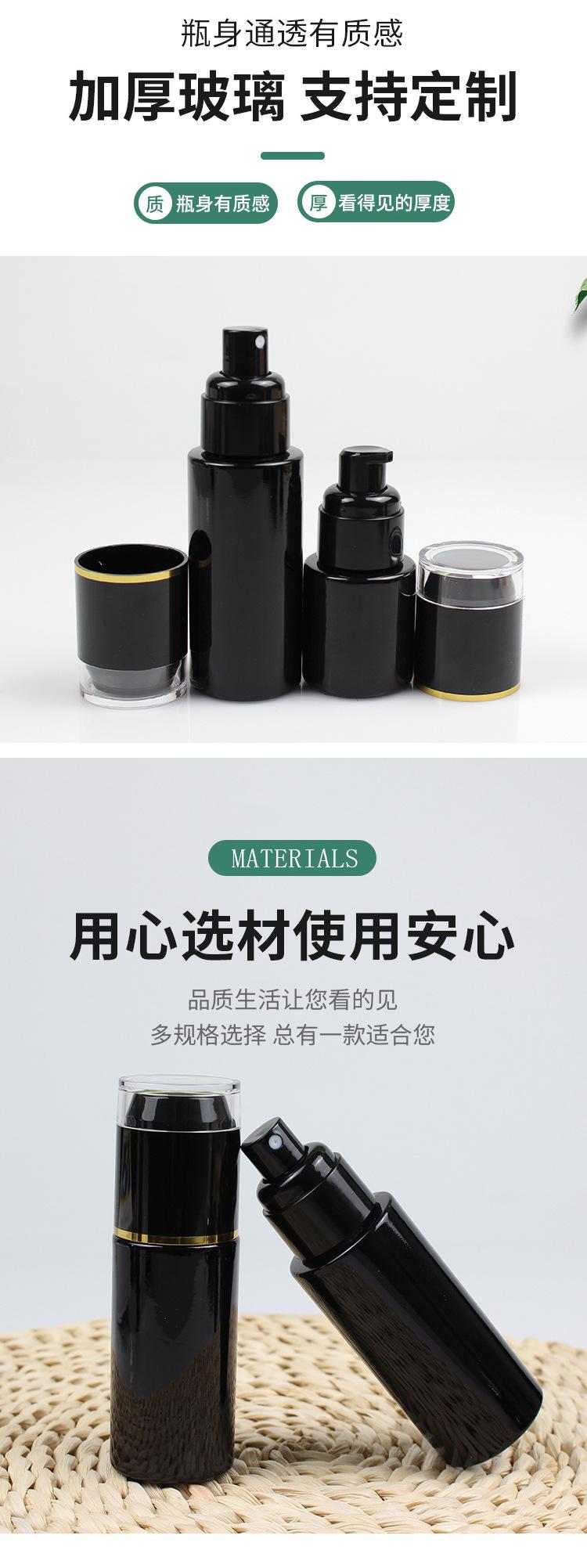 Botella de spray de vidrio a prueba de luz, botella de prensa de loción, botella de gotero de aceite esencial, botella con bomba de aceite, productos para el cuidado de la piel, subenvases, botella pequeña, venta al por mayor