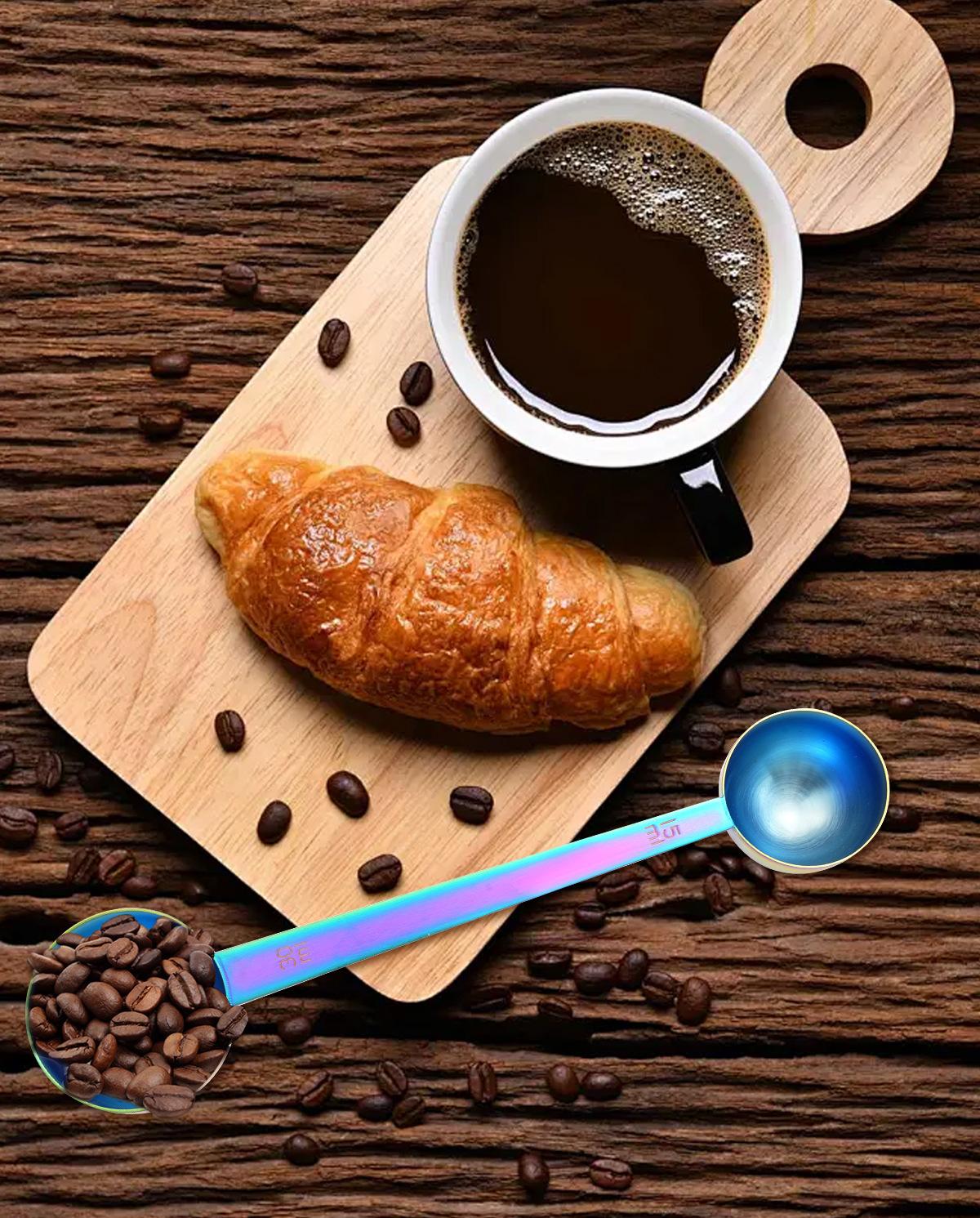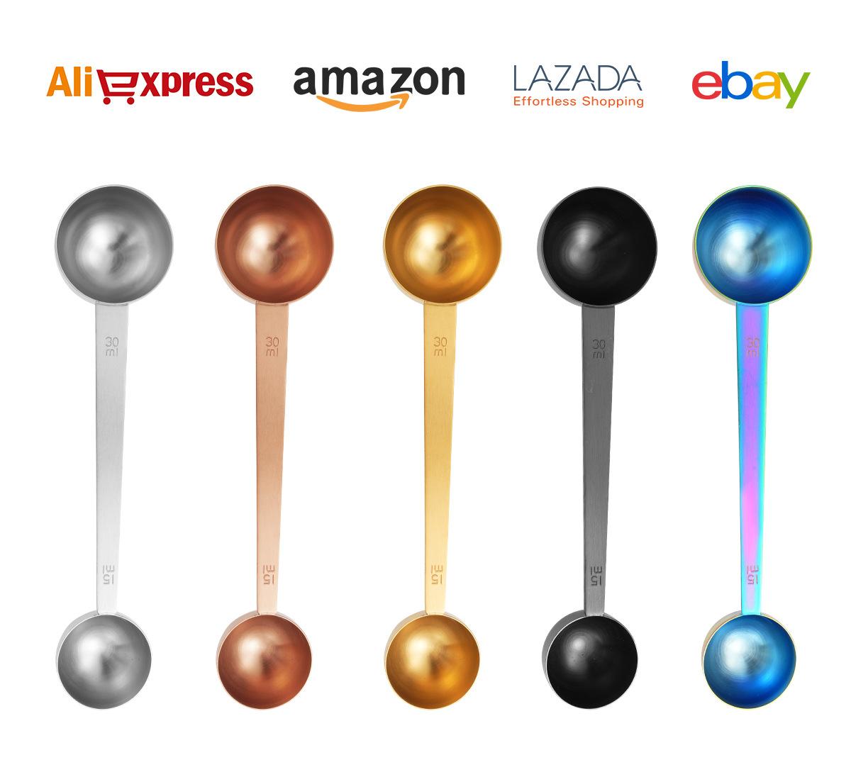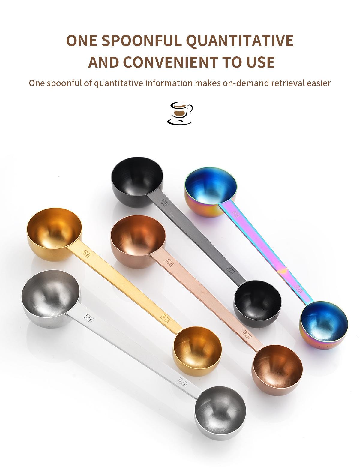 Cuchara medidora de cocina de acero inoxidable transfronteriza, cuchara para condimentar, cuchara medidora para hornear, cuchara de café de doble cabeza con escala, taza medidora al por mayor