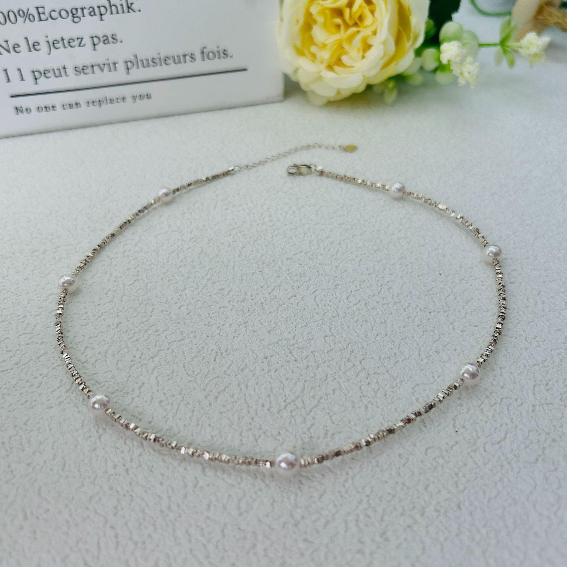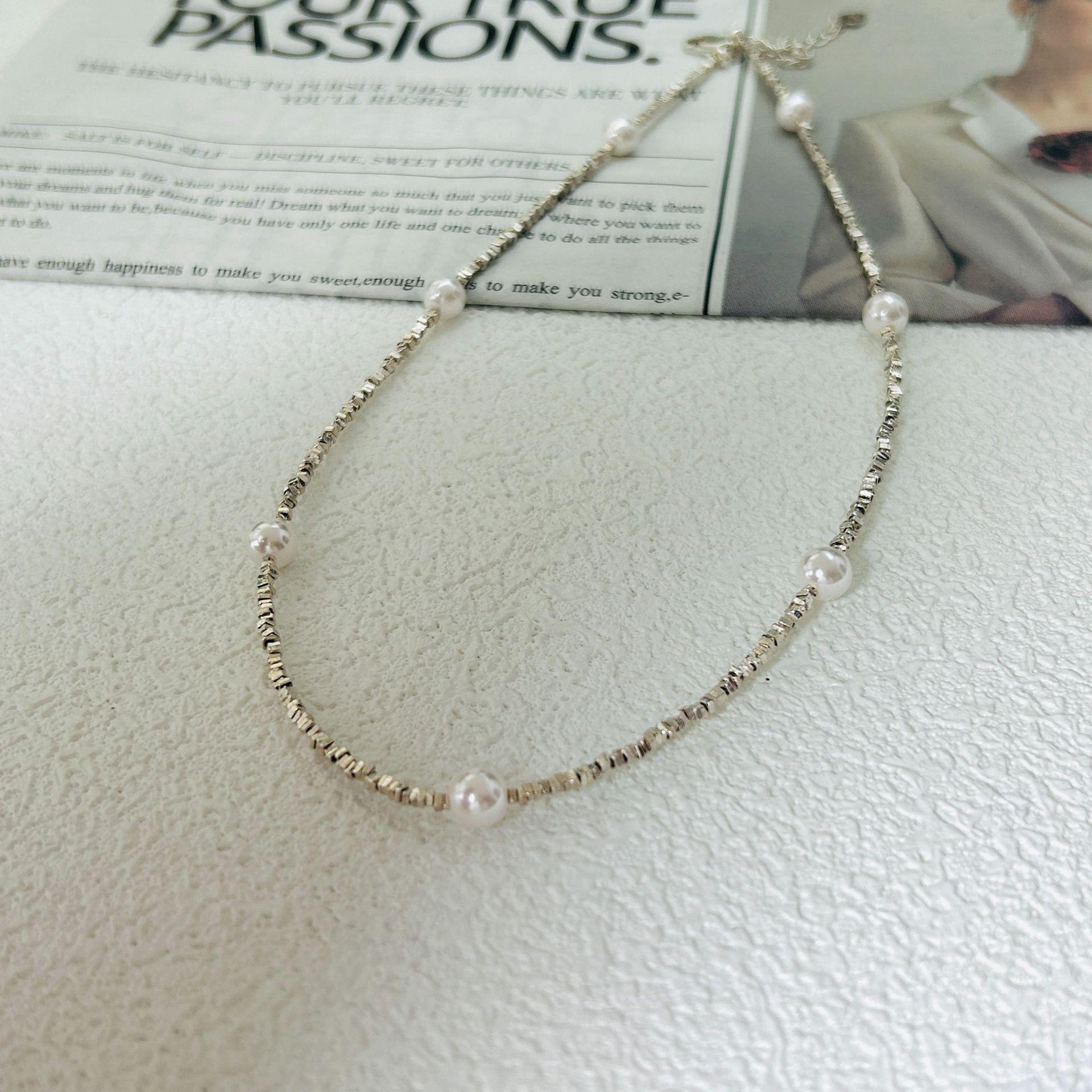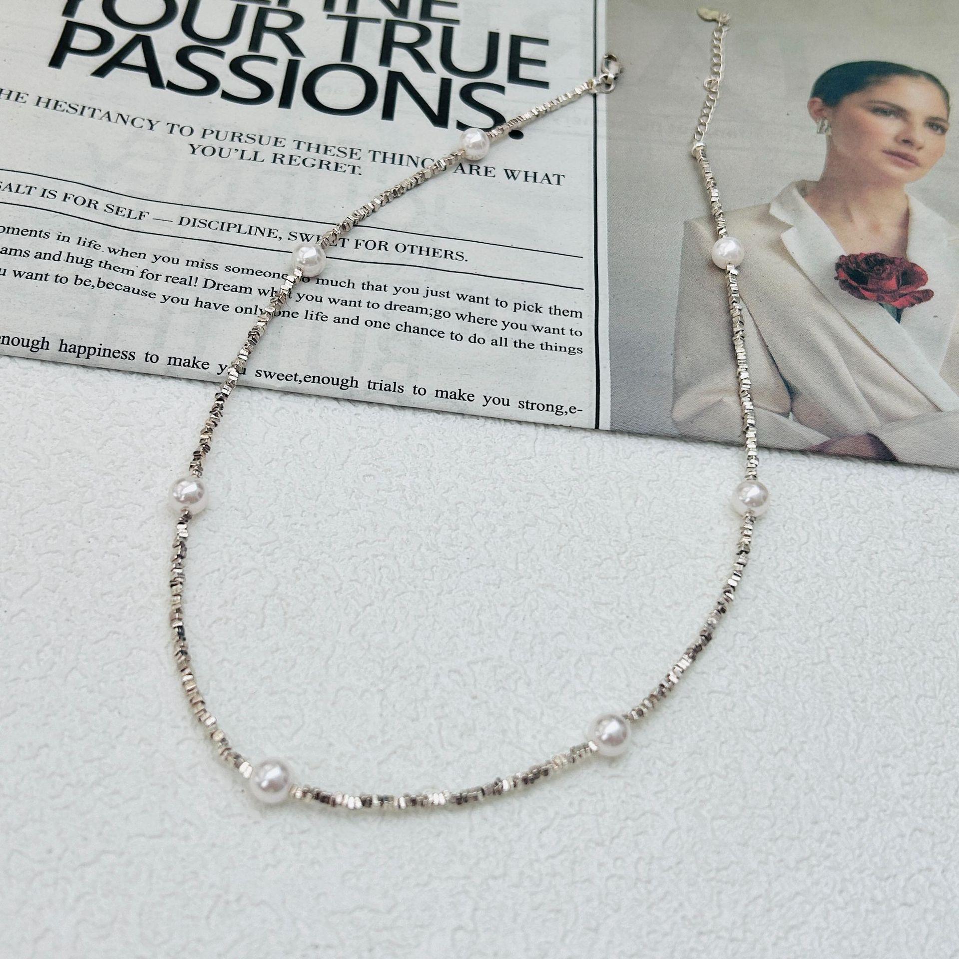 Collar de perlas de plata de ley con diseño de nicho de lujo ligero para mujer, accesorios de clavícula de alta gama, nuevo estilo popular 2024