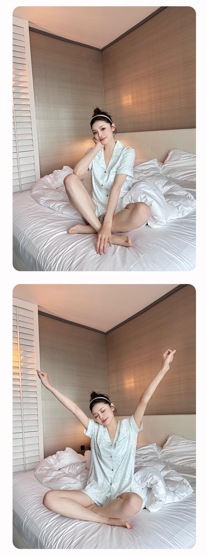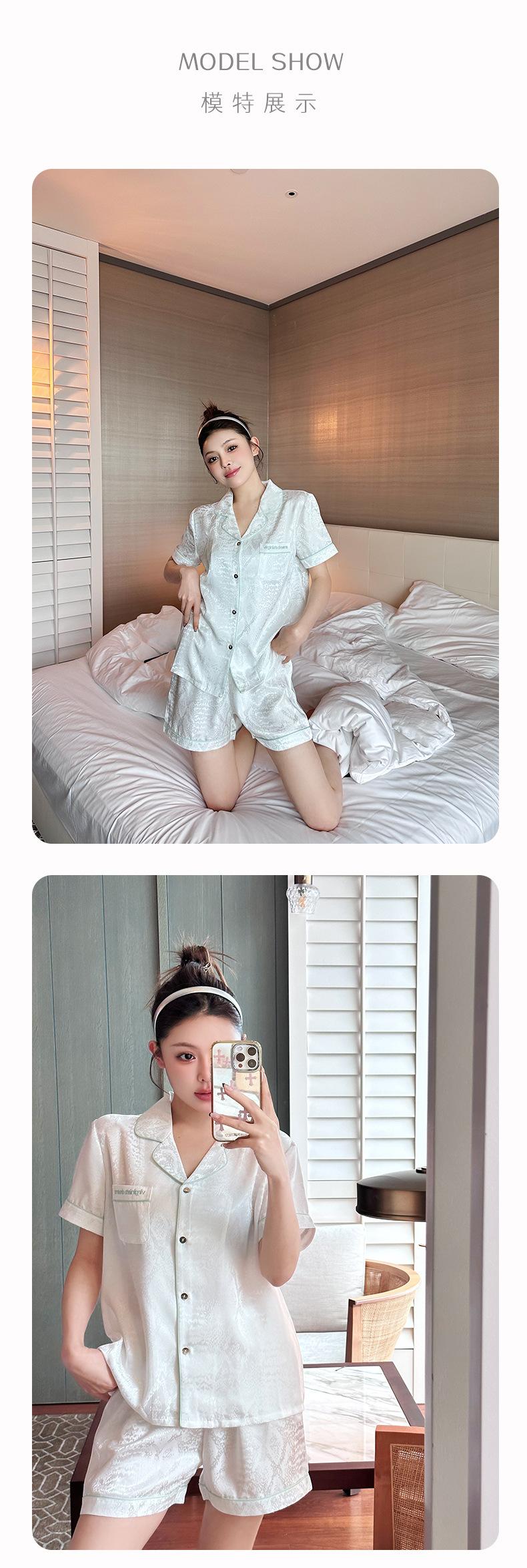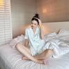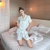 Pijamas de una pieza para el hogar de marca grande para parejas, pantalones cortos de manga corta de satén blanco Aurora 2024.