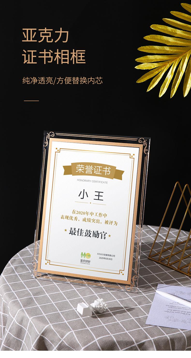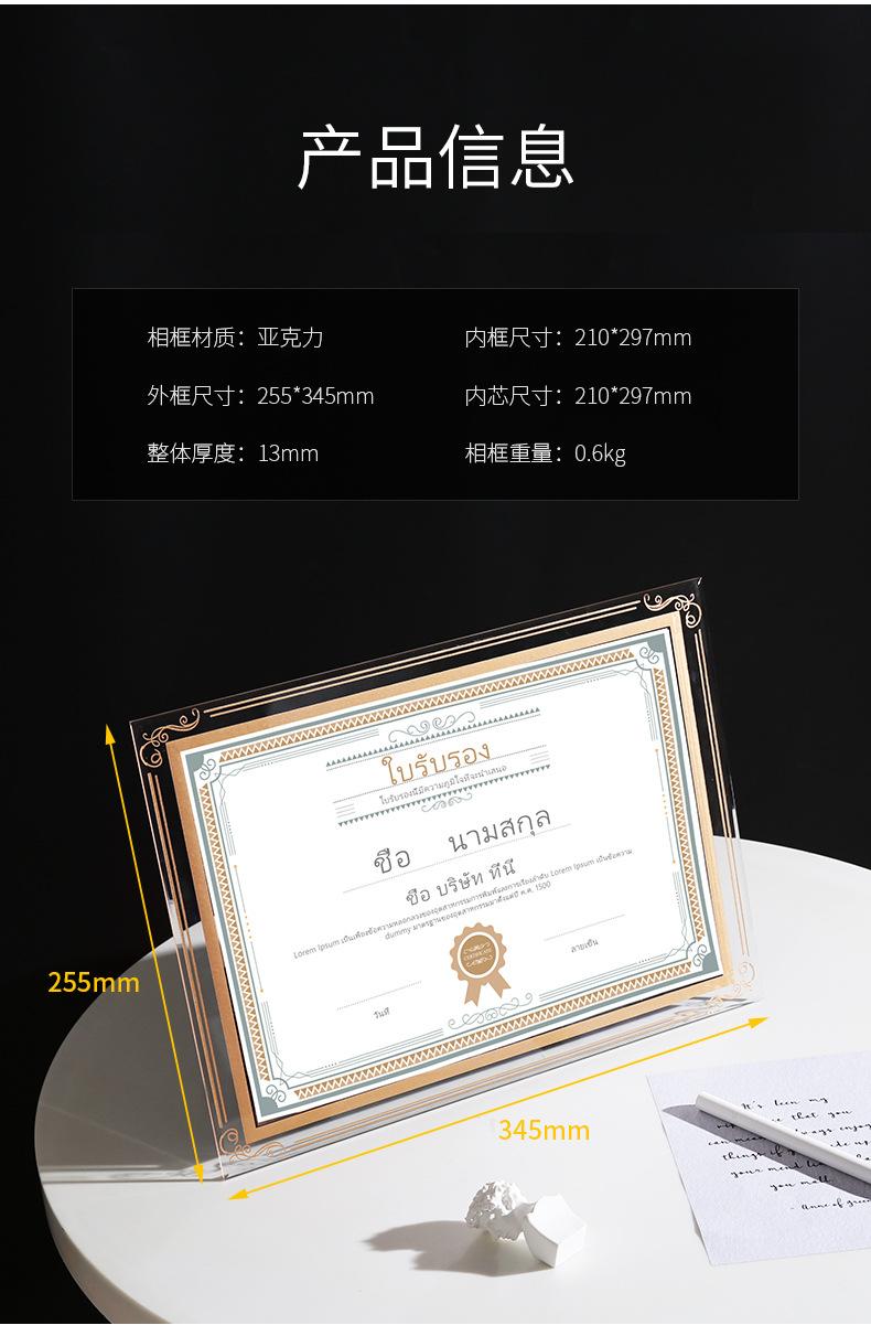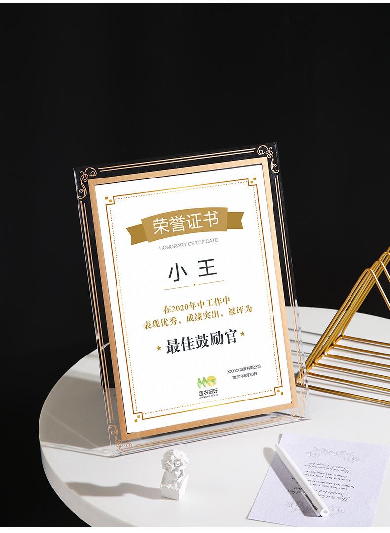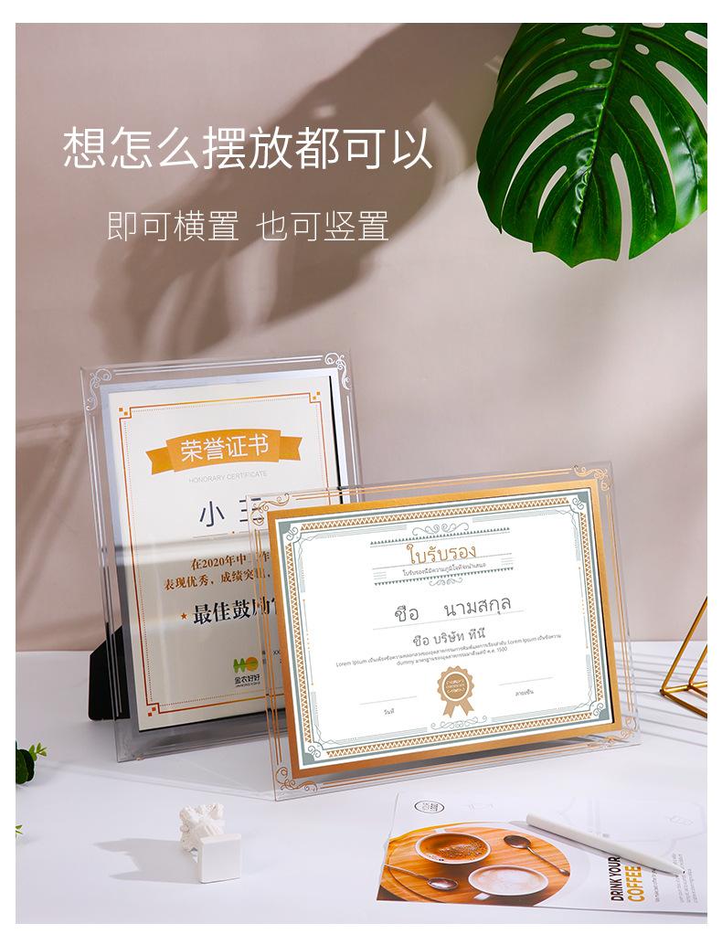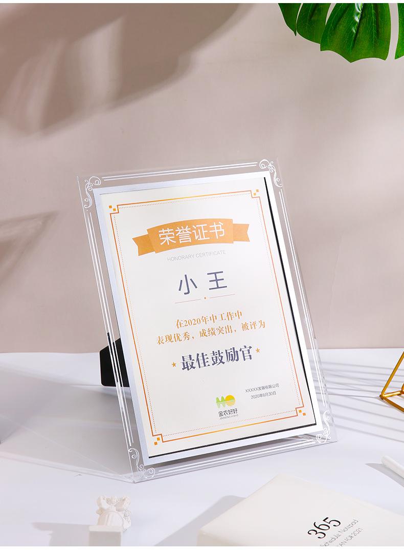 Cristal Acrílico A4 Certificado Certificado de Honor Soporte Marco Exterior Una Cara A4 Vertical Carta de Nombramiento Certificado de Premio