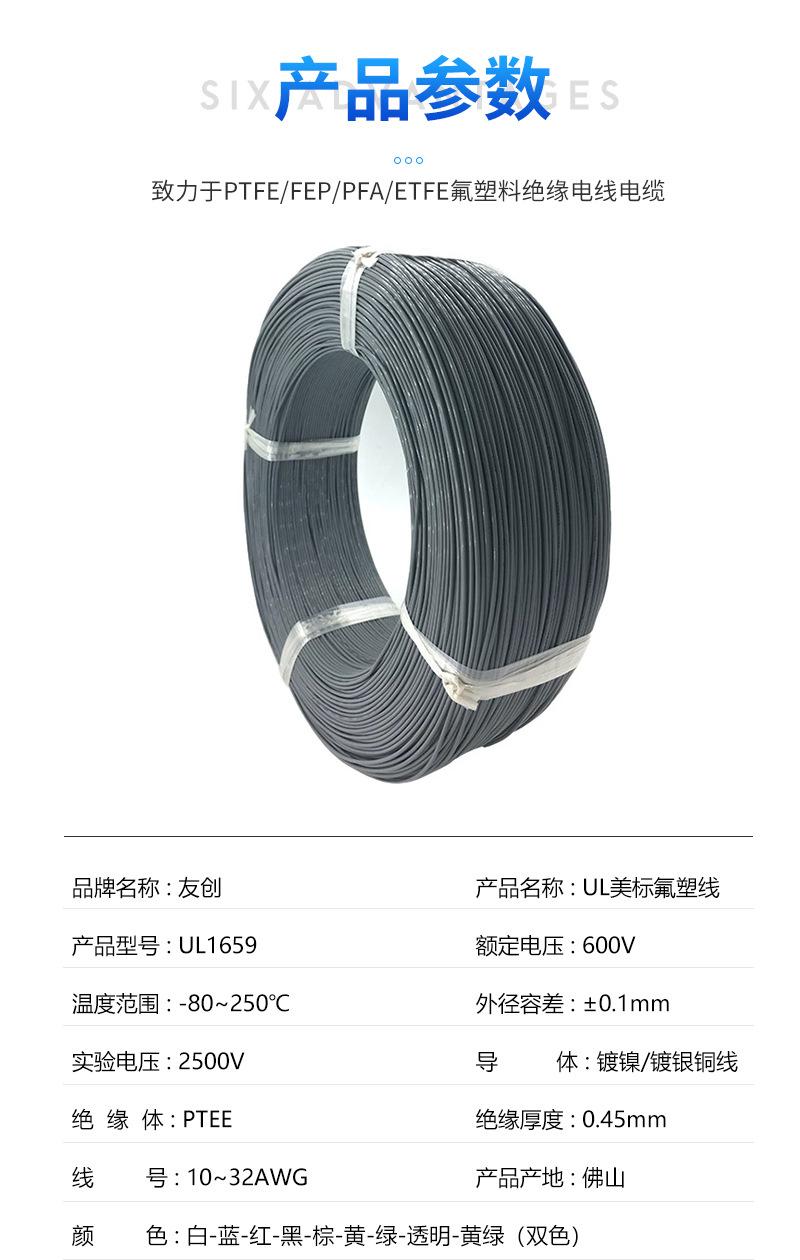 Cable de teflón de alta temperatura UL1659, cable aislado resistente a altas temperaturas y presión, cable de cobre niquelado de 14/16/18/20 AWG.