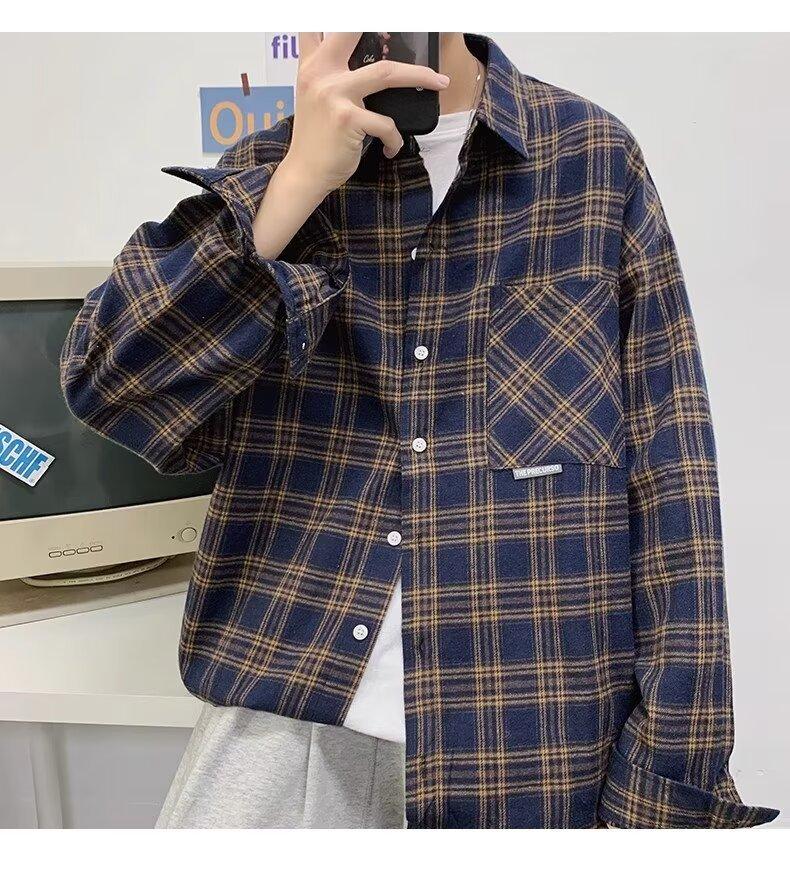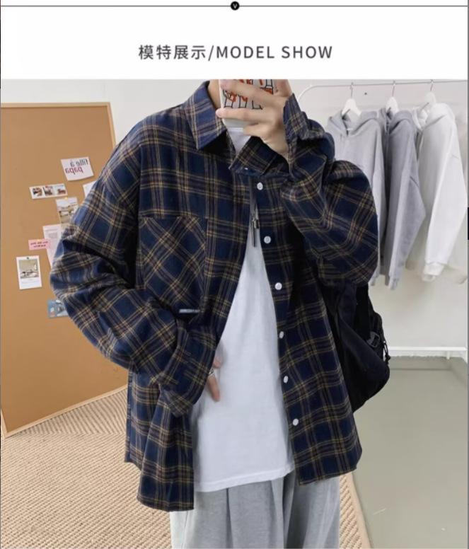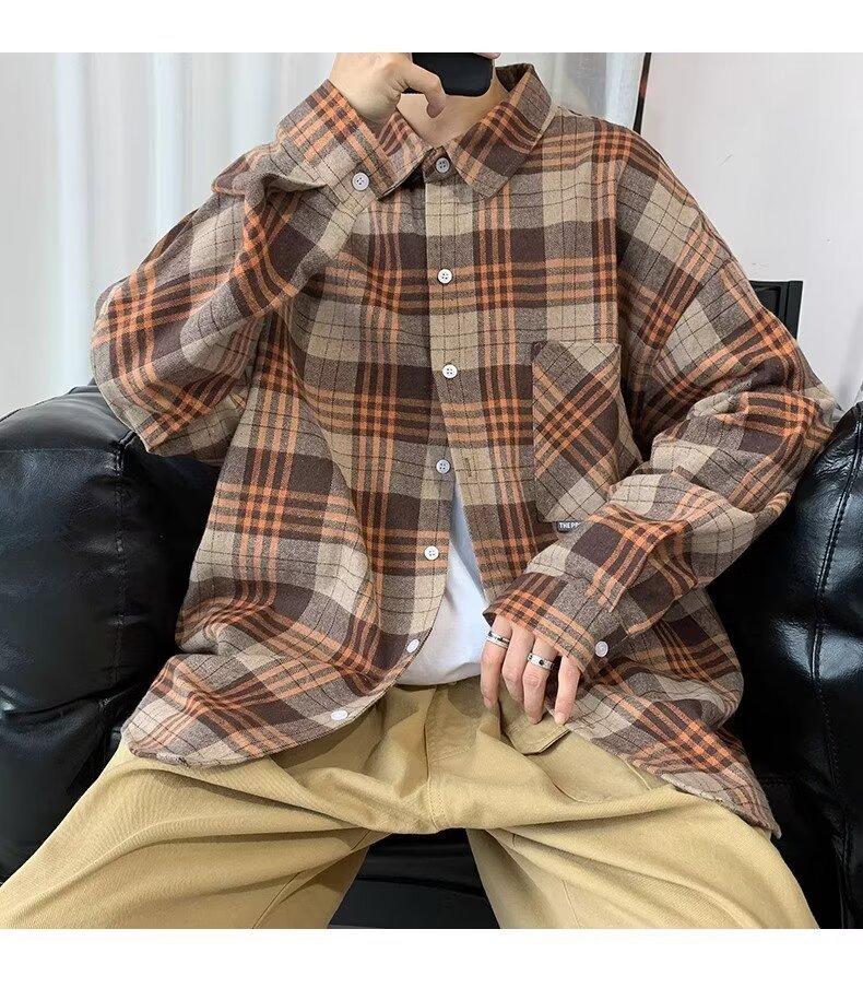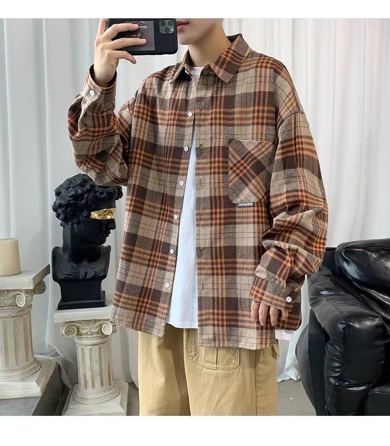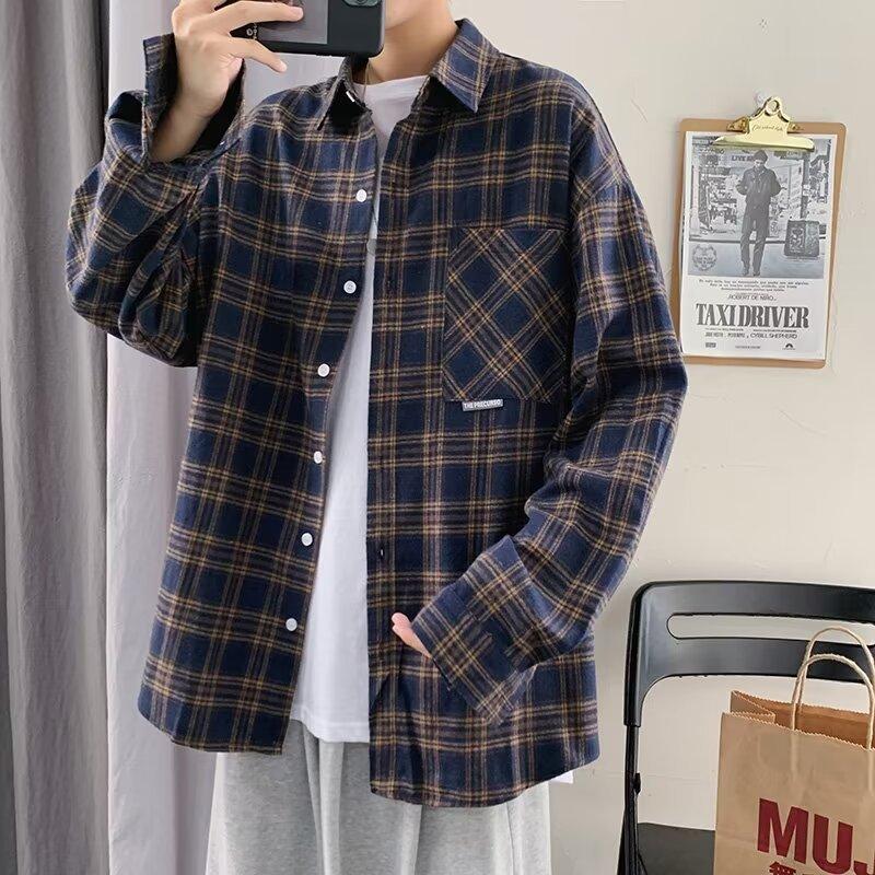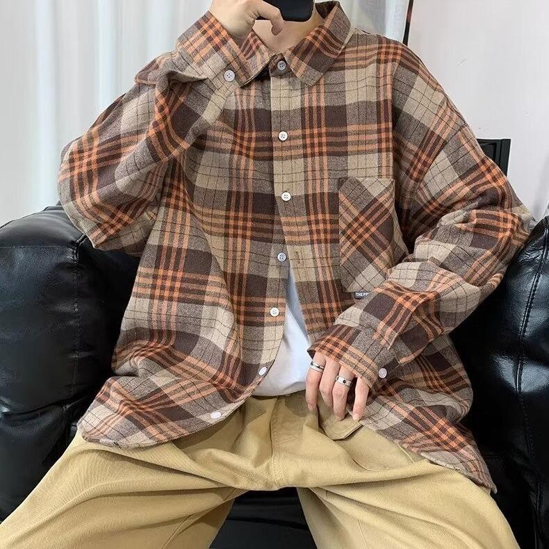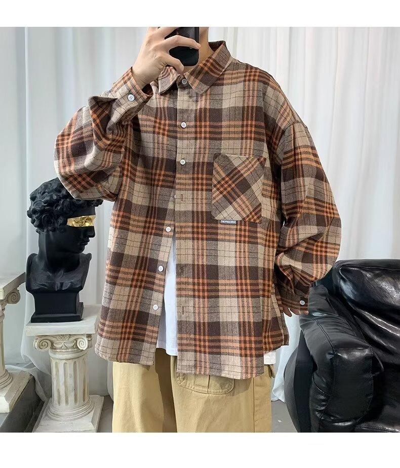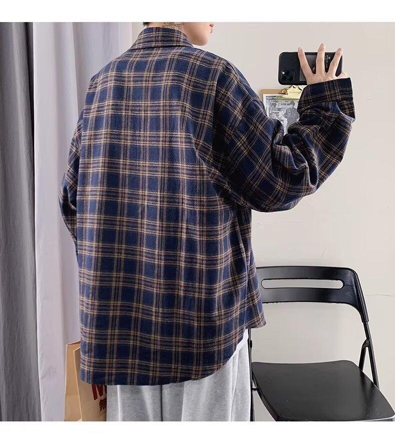 Camisa de manga larga a cuadros para hombre, nueva, holgada, estilo coreano, de moda, estilo retro, informal, para estudiantes, para primavera y otoño