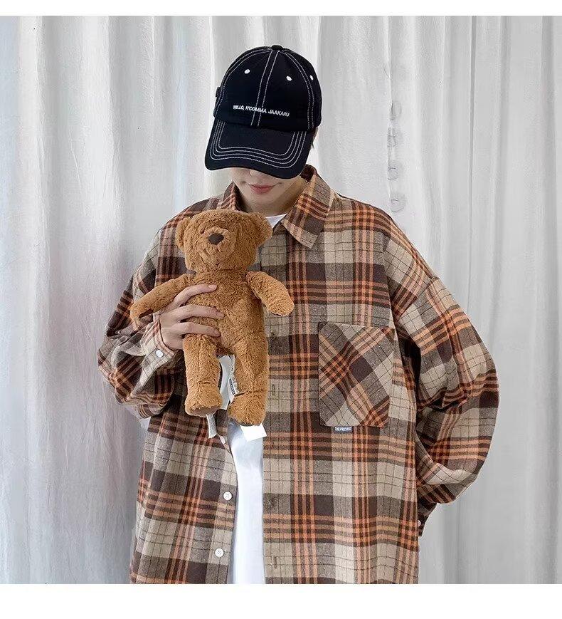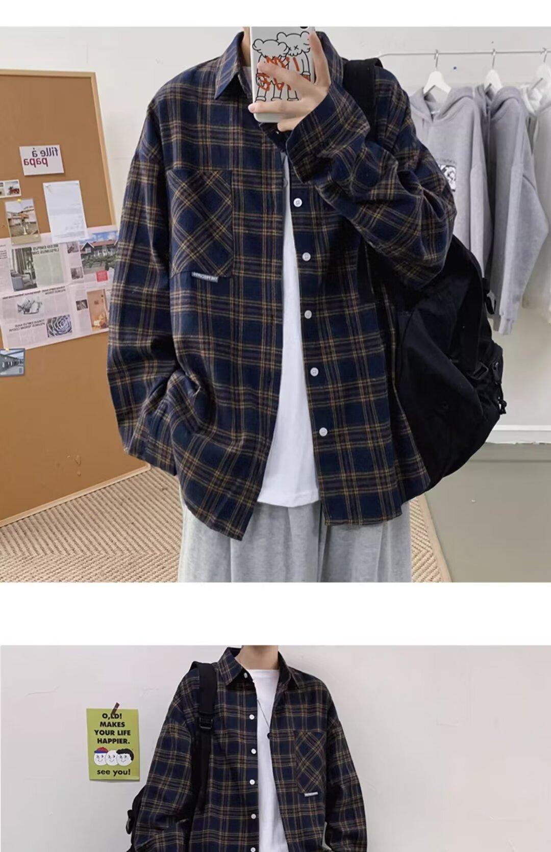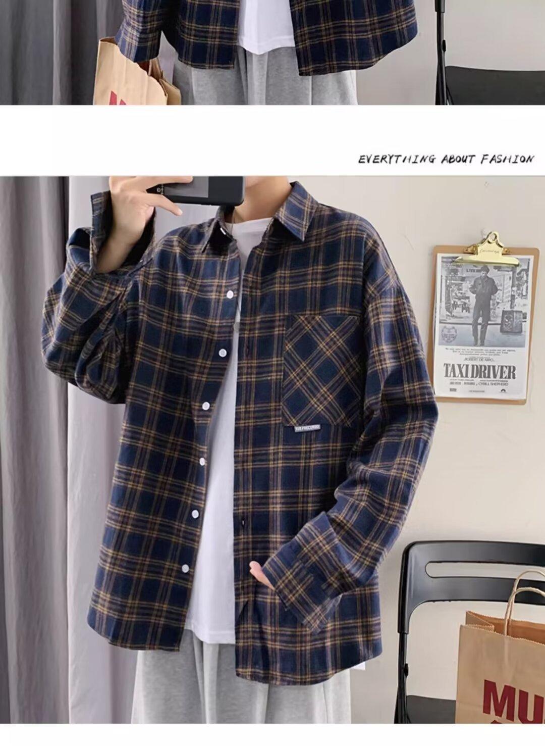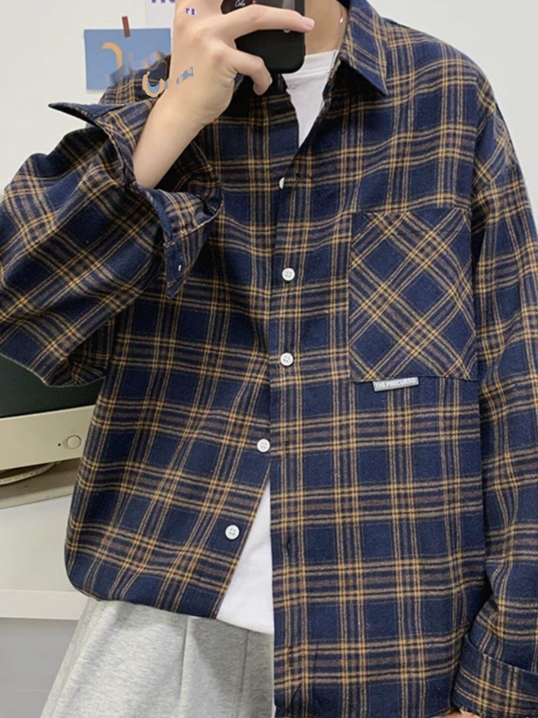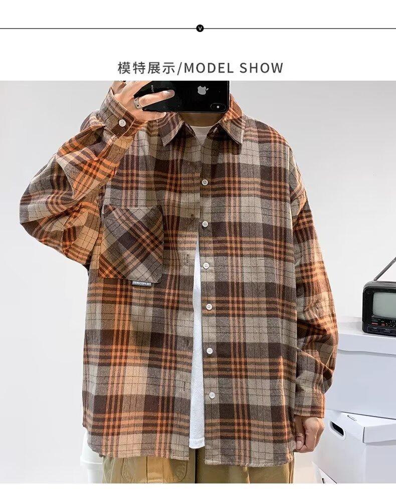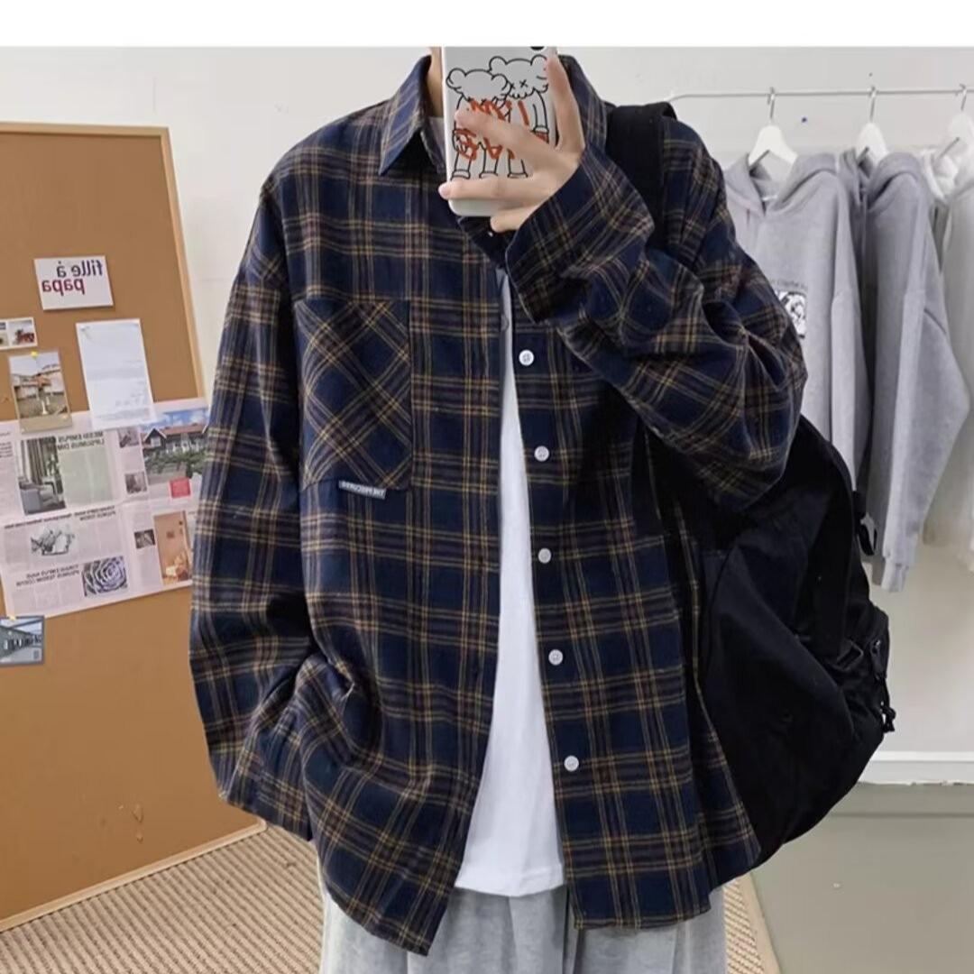 Camisa de manga larga a cuadros para hombre, nueva, holgada, estilo coreano, de moda, estilo retro, informal, para estudiantes, para primavera y otoño